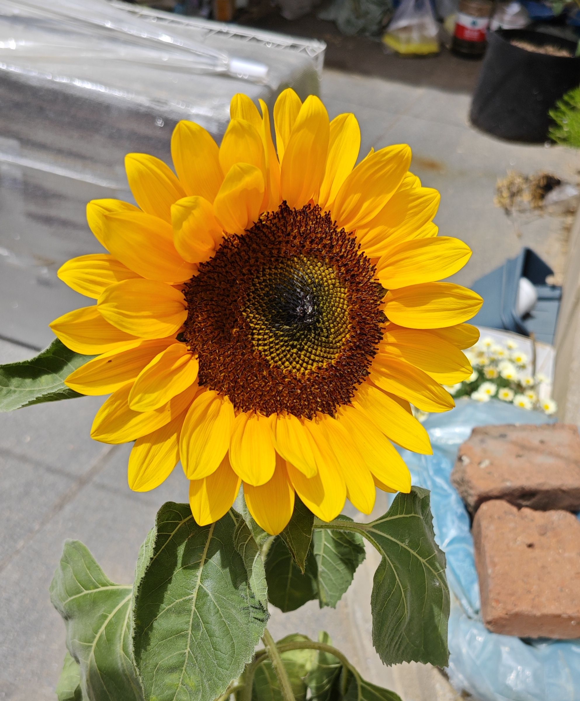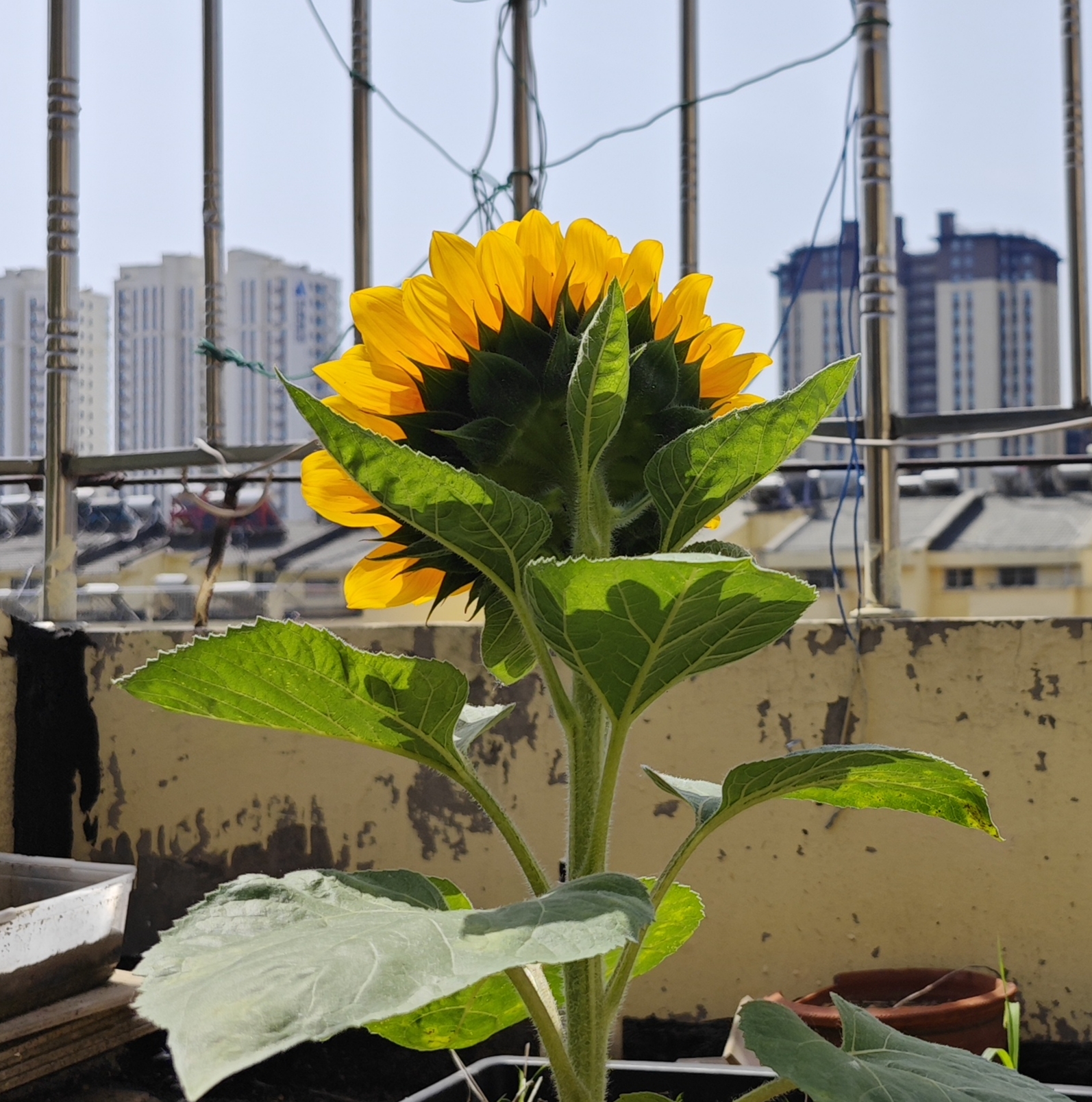 另一颗向日葵还没完全开,花盘里有像粗沙子一样的东西,凑近一看是一只黄色的毛毛虫,沙子是它拉的屎…求助家里人把它处理掉了,太怕虫了于是没有拍照( ´ー`)人