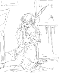 她抬起头,深红色的眼眸望向我,那眼神空洞得不带一丝情感,却又莫名地掺杂着一丝怜悯,仿佛在看一个注定要死去的物件。