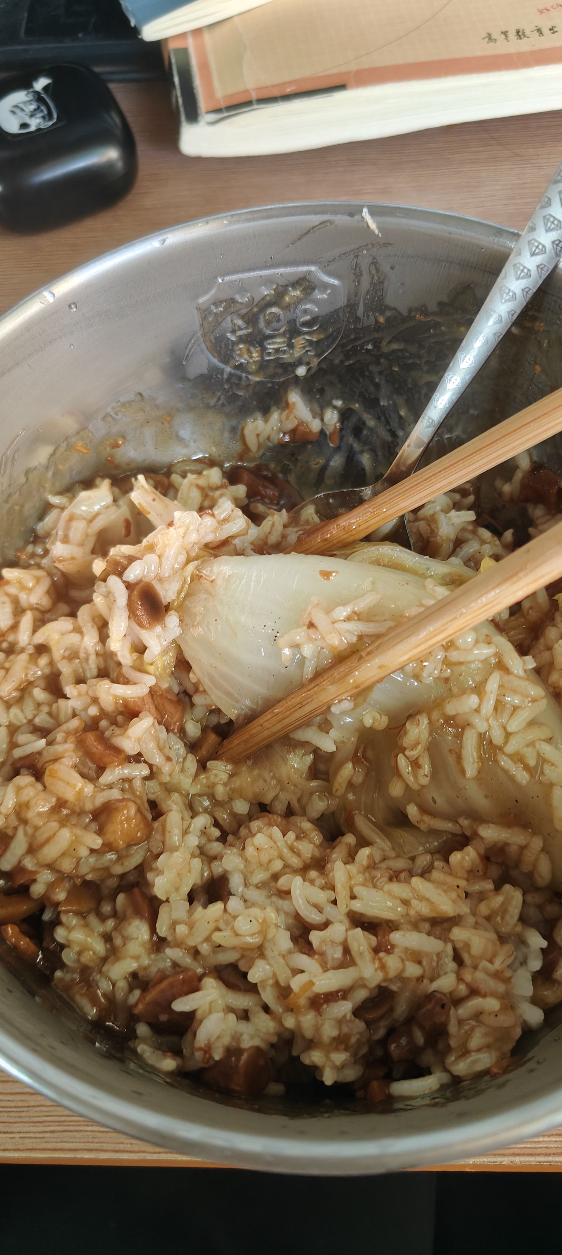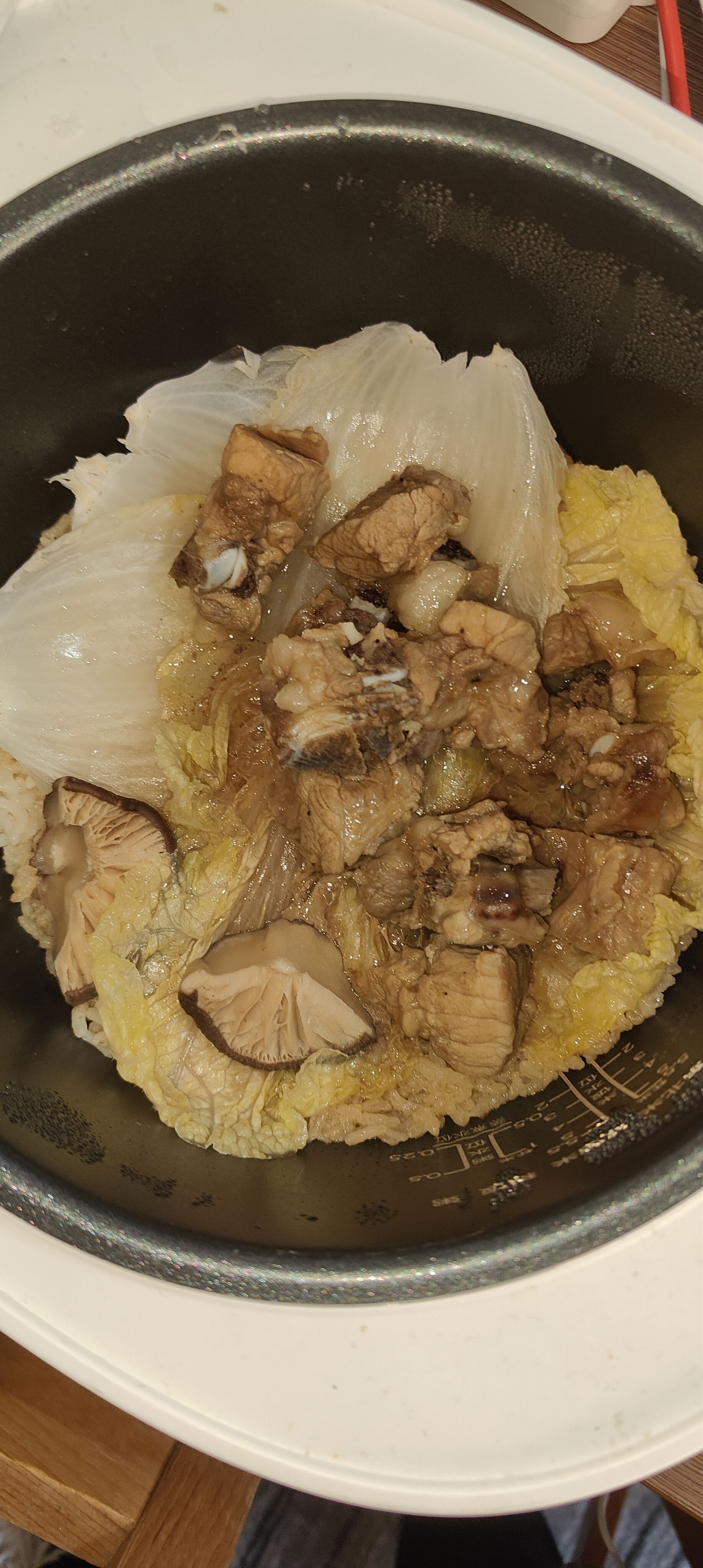 香菇卤肉预制菜,约5元,白菜自己蒸的
