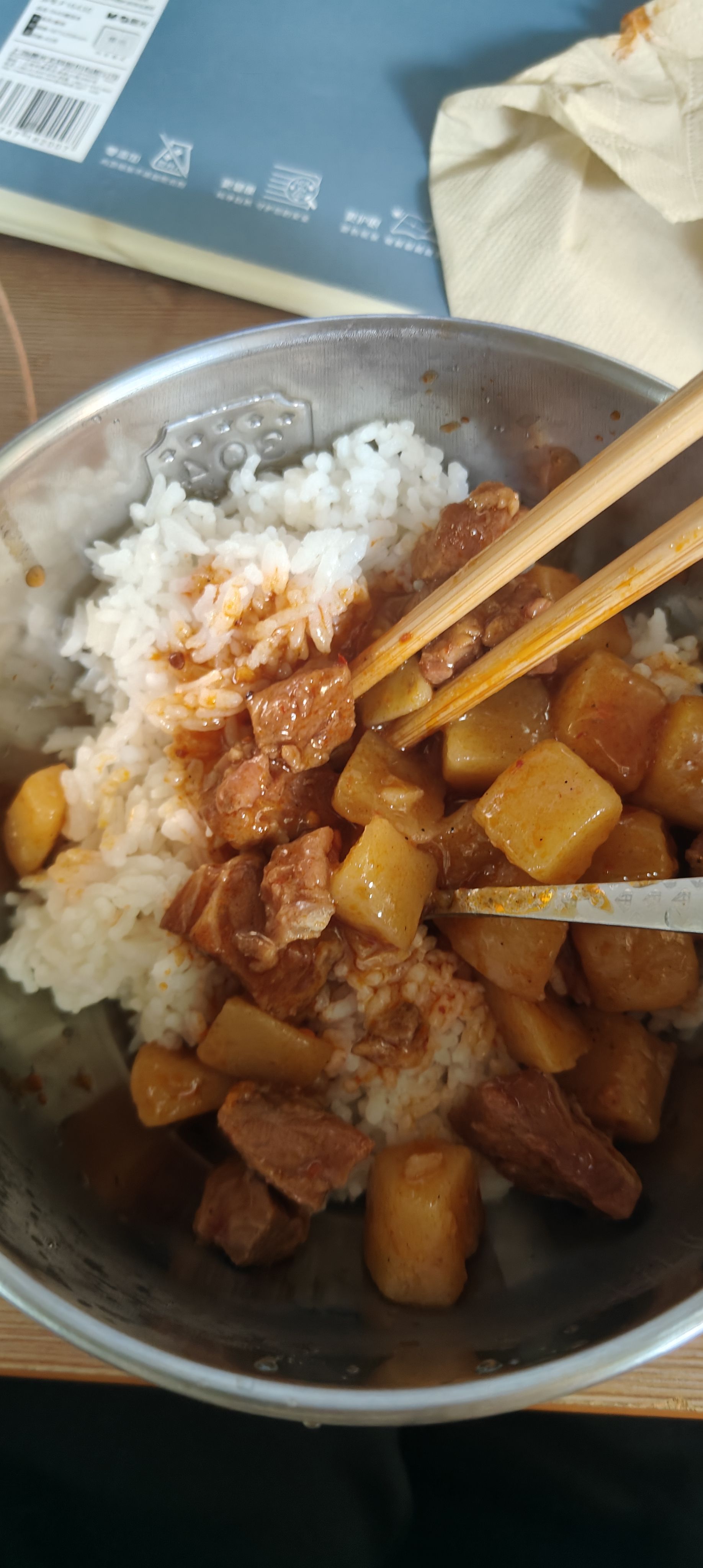 今日午餐,预制菜咖喱牛肉,价格约5元