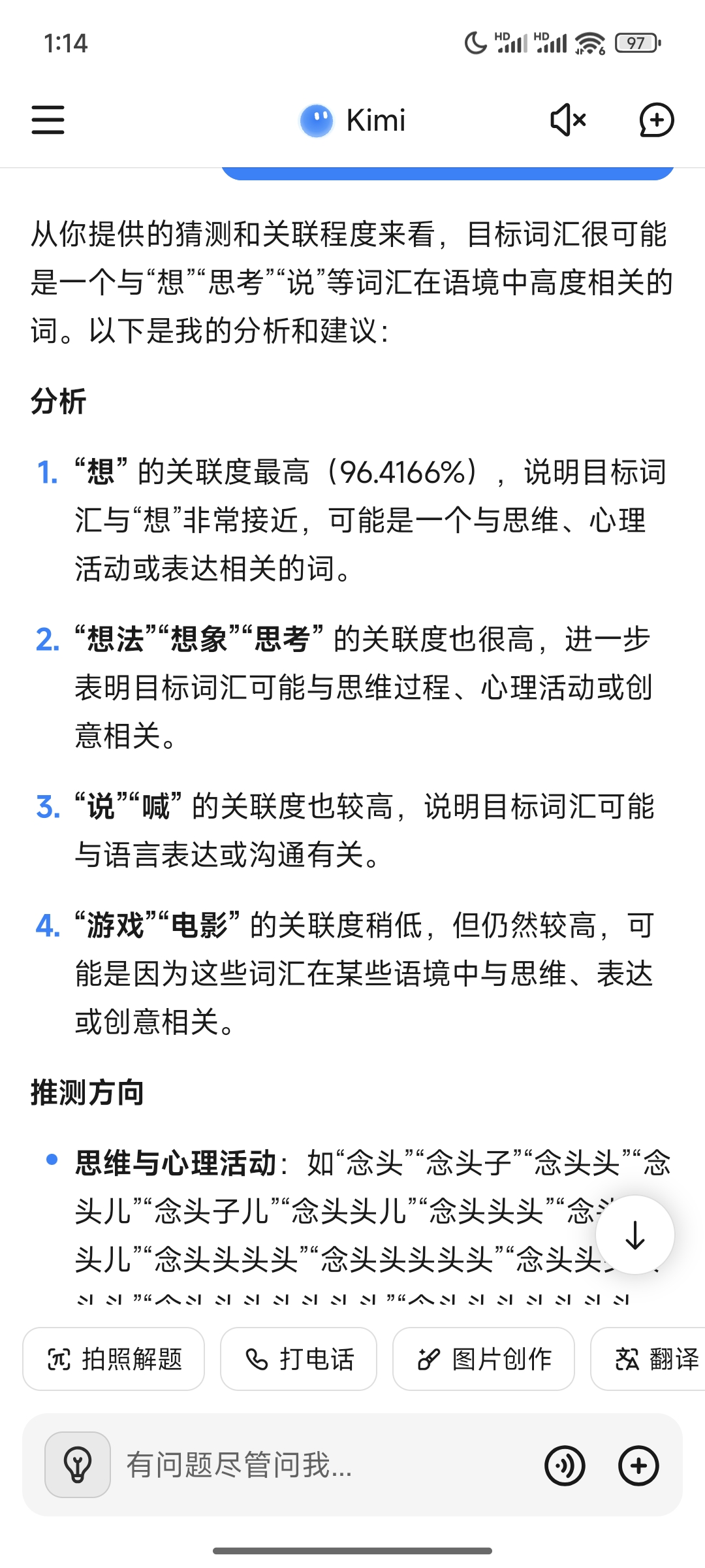 “想”足足有96%