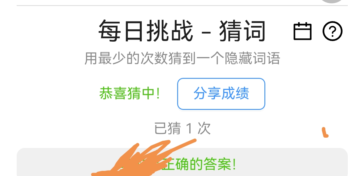 今天答案也太扯了吧( ゚∀。)不是借助外援我猜一辈子都猜不出来啊,上面猜到的肥哥好强( ゚∀。)