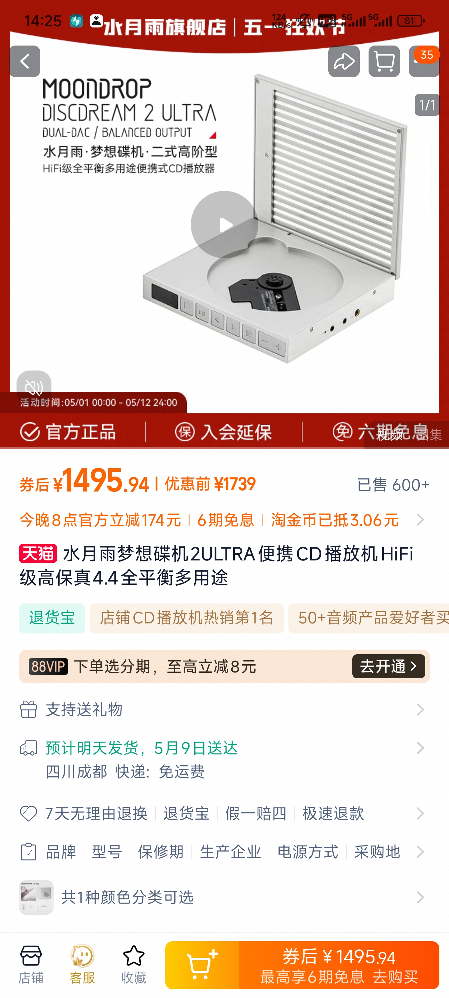 恕我直言,这个cd机简直就是一坨。只支持3.5mm输出,蓝牙没有ldac,甚至cd机不带解码芯片,连推力都没有标。就这还卖一千多,就是是买个hificd机当摆件也比这个有性价比多了