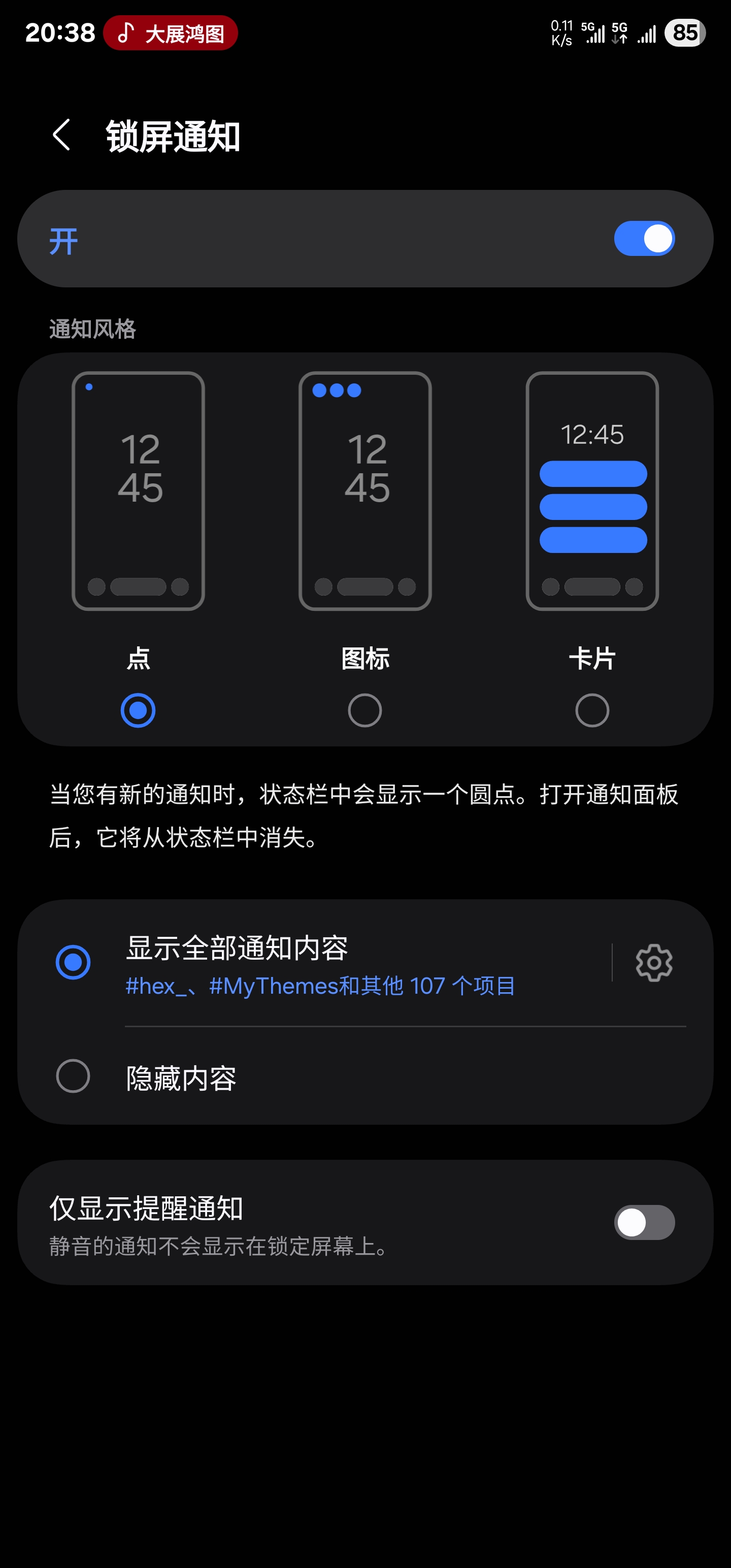 设置→通知与状态栏→锁屏通知→显示规则→关闭所有锁屏通知
