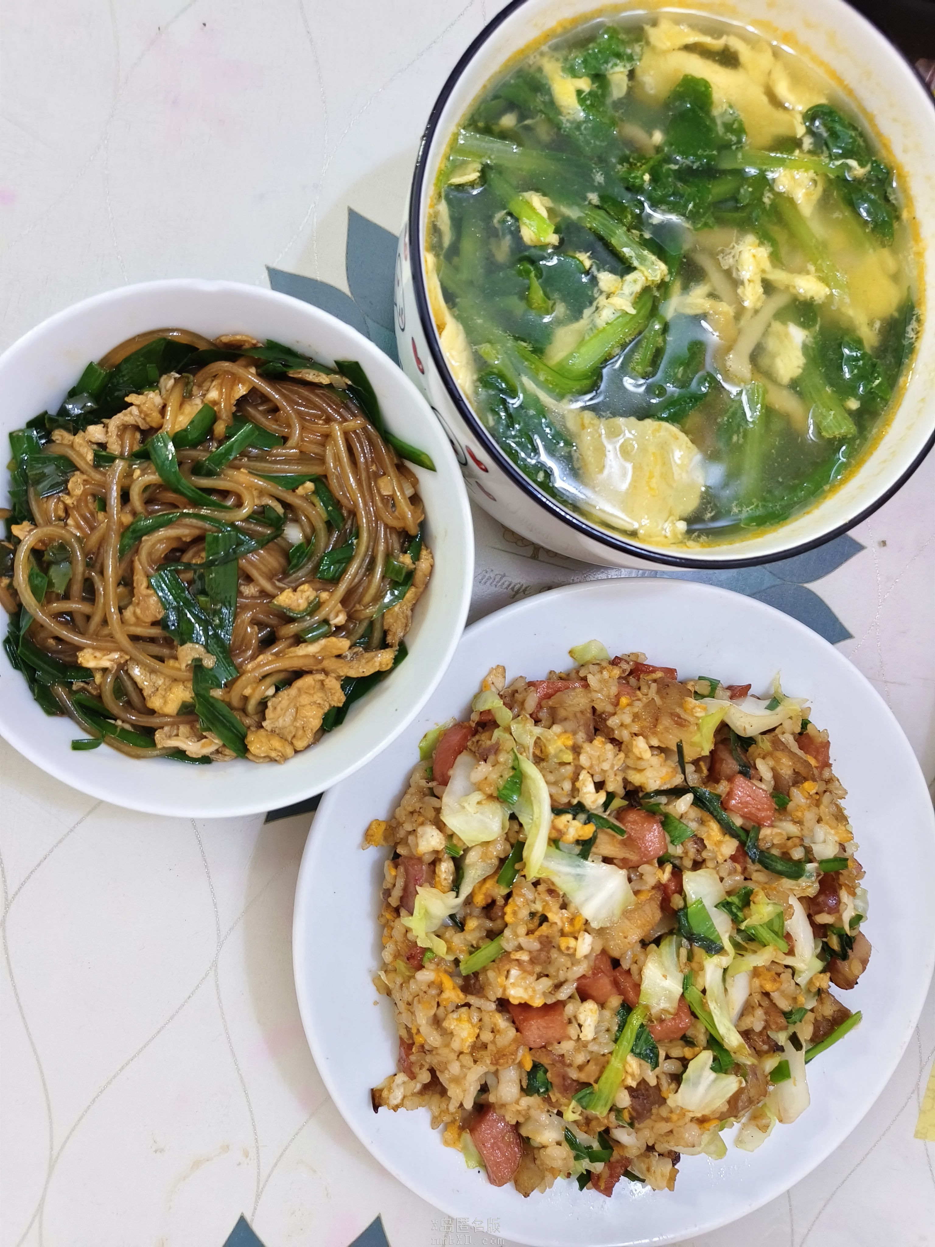 炒合菜,青菜汤和炒饭