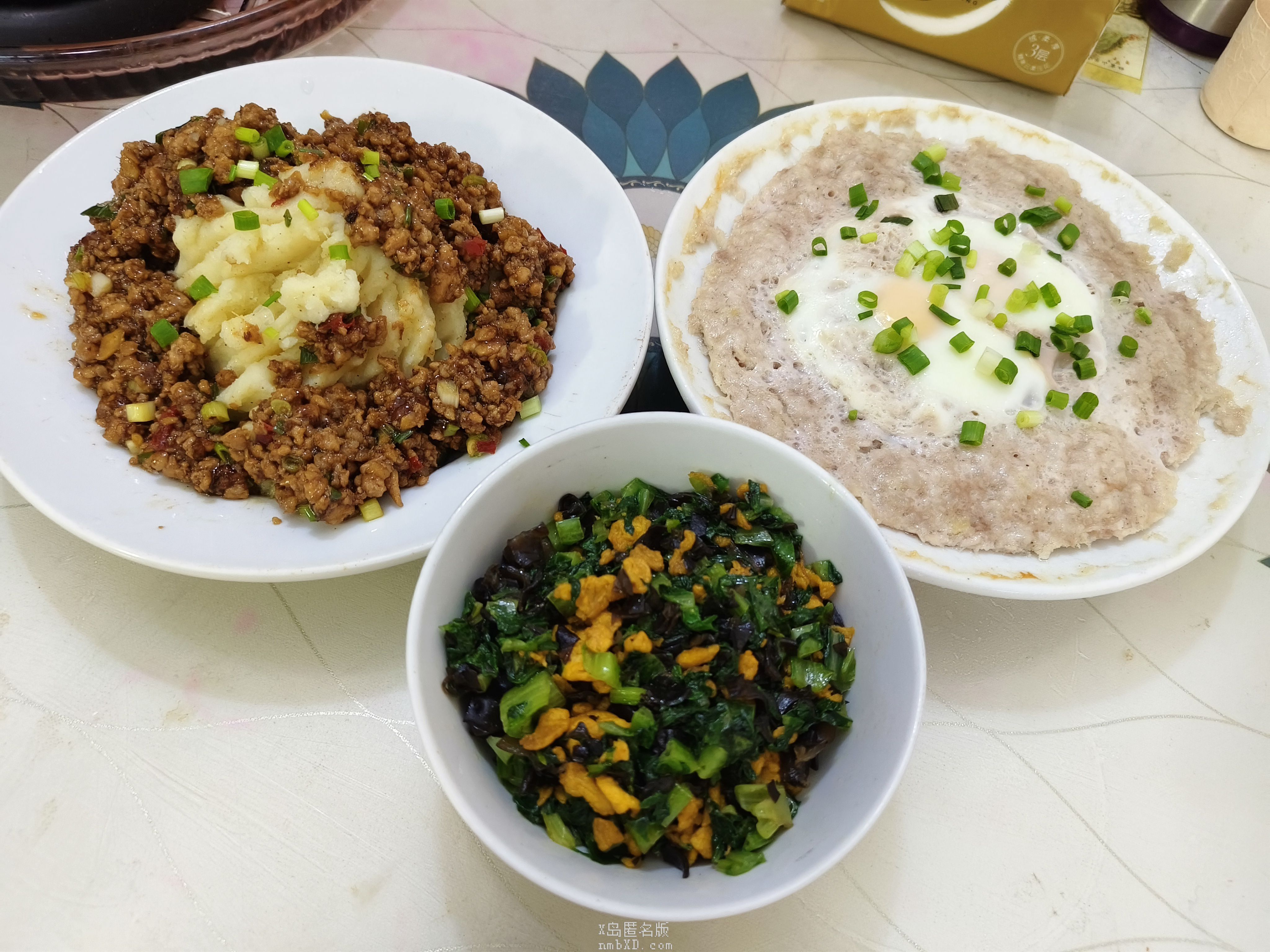 今天吃肉沫炖蛋,鱼香土豆泥和素三鲜(*゚∇゚)
