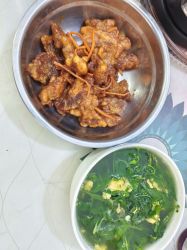锅包肉和菊花脑蛋汤( ゚ 3゚)