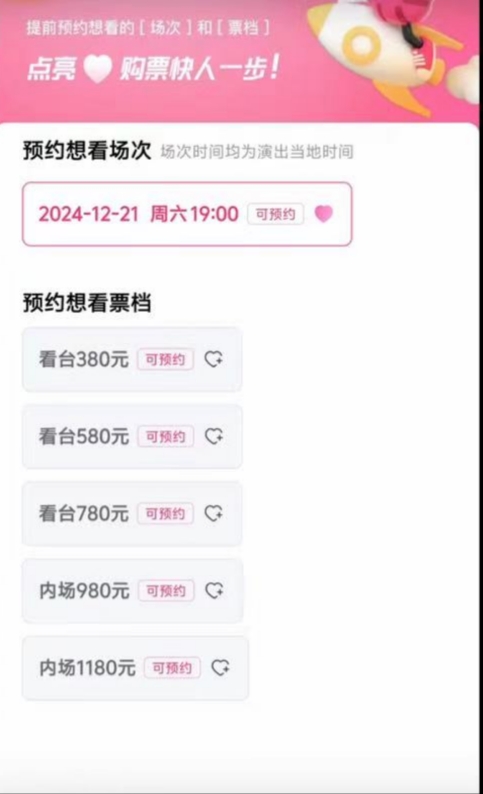 这次开票好像没看到更低档位的票了,还有1580和1880的票