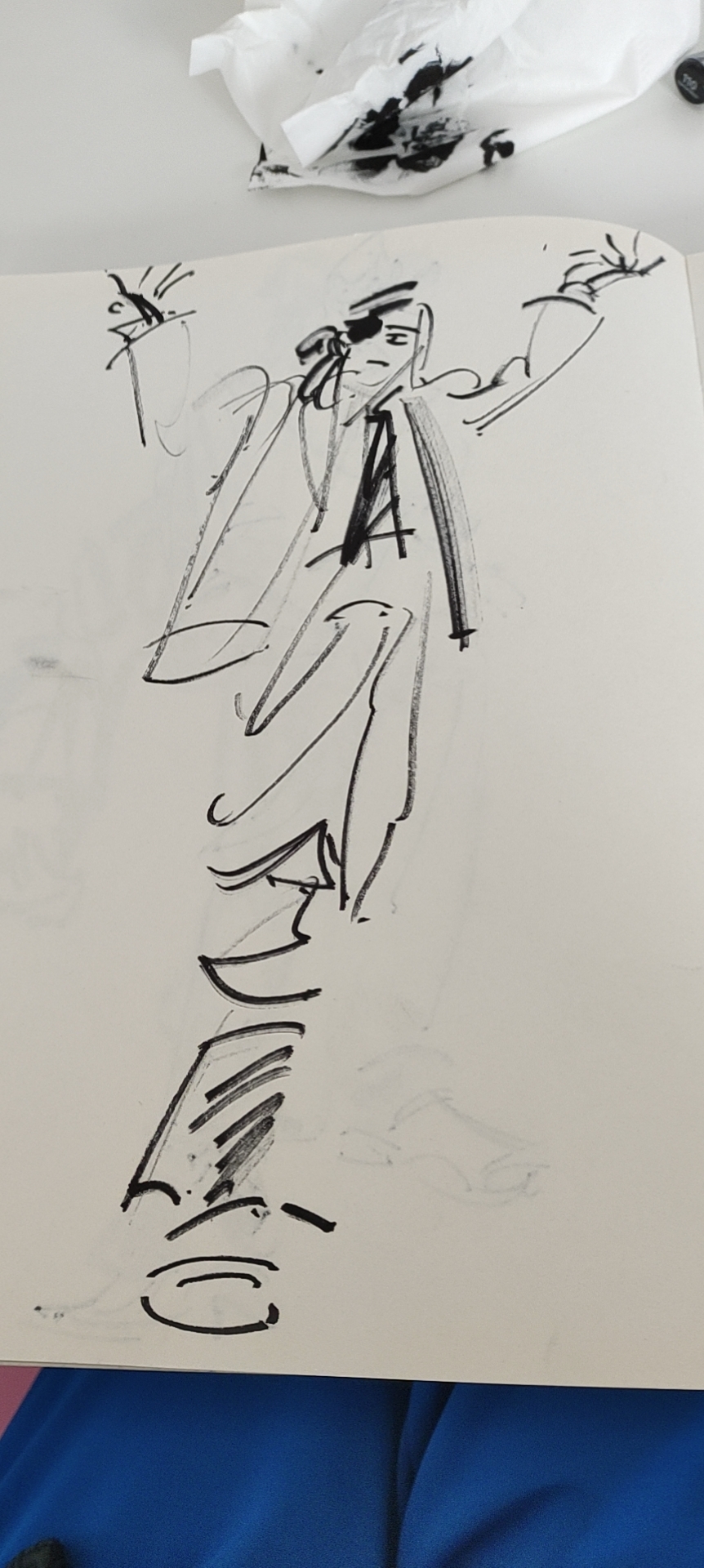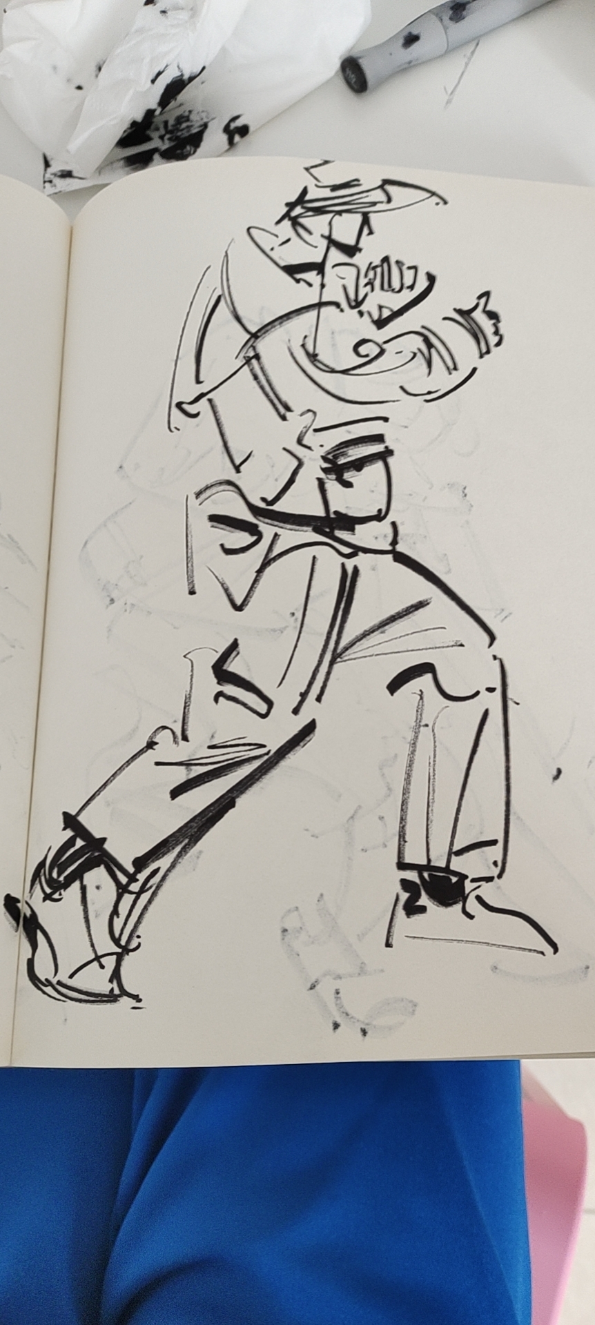 说是画了很多速写本,但我自己撕了不少而且黑色马克笔太洇了,背面都画不了因此其实水分很大。