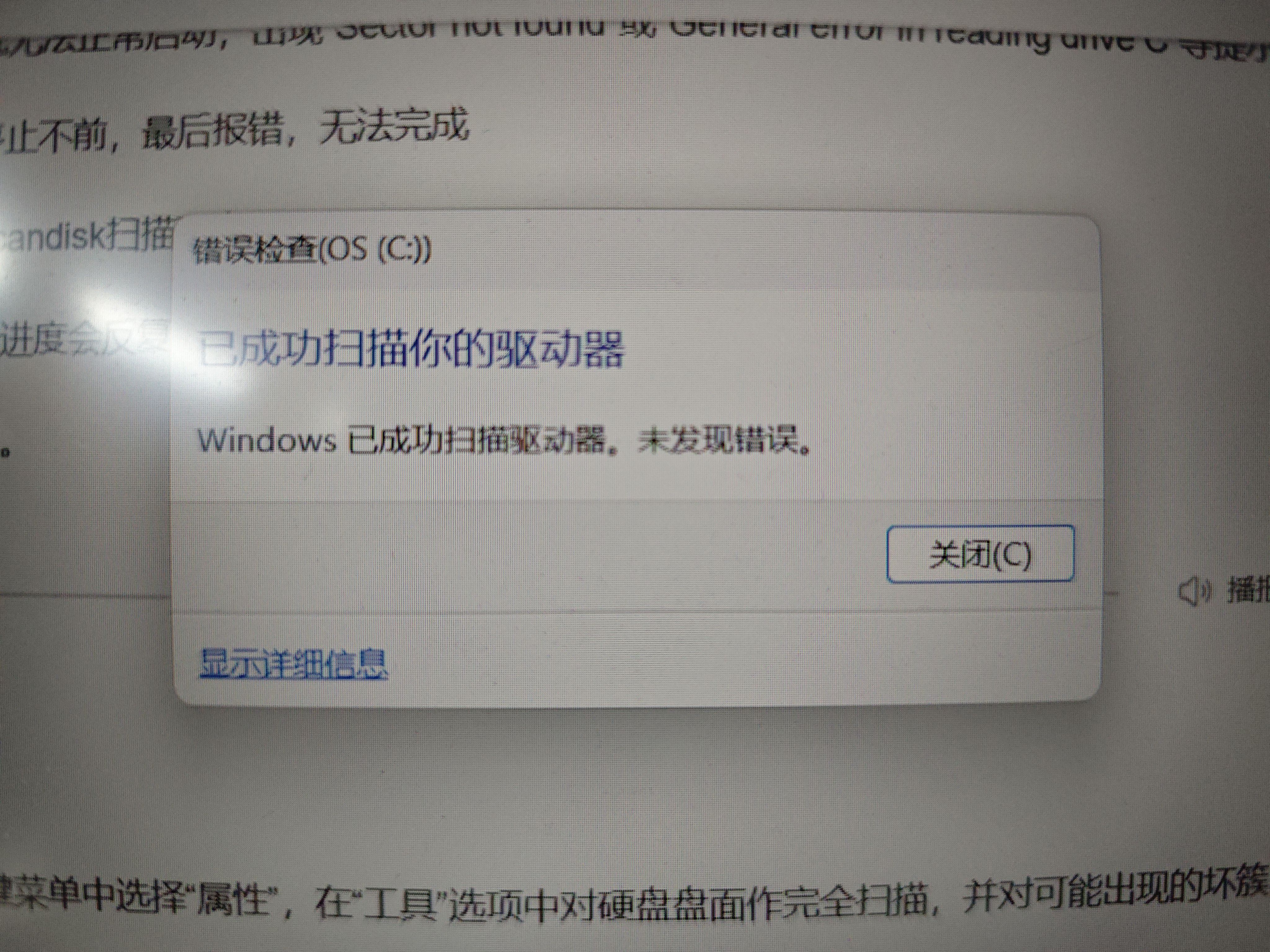 报告肥哥,系统自带的错误检查没有发现坏道(;´Д`)