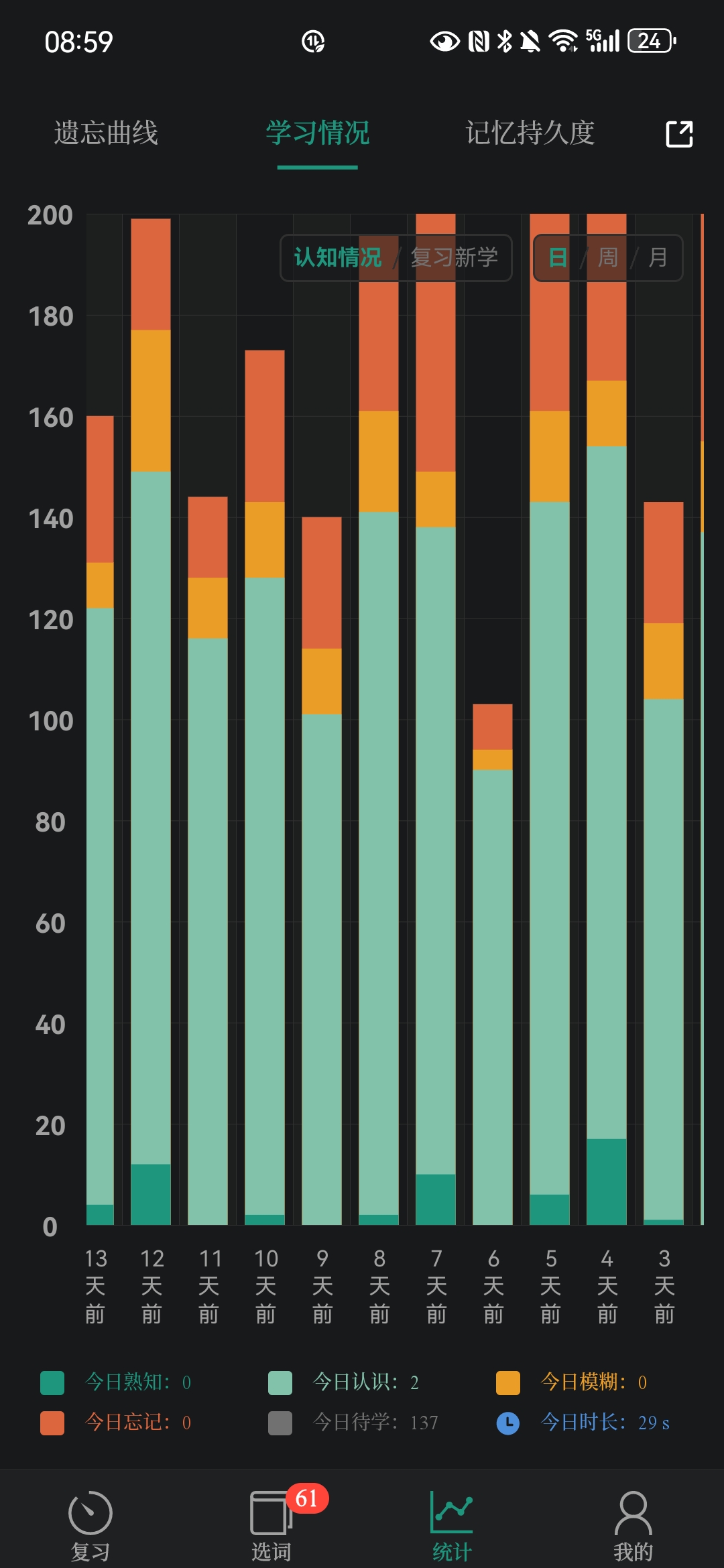 今天尝试把APP上的单词记忆量提到了150太多了小肥要塞不下了゚(つд`゚)