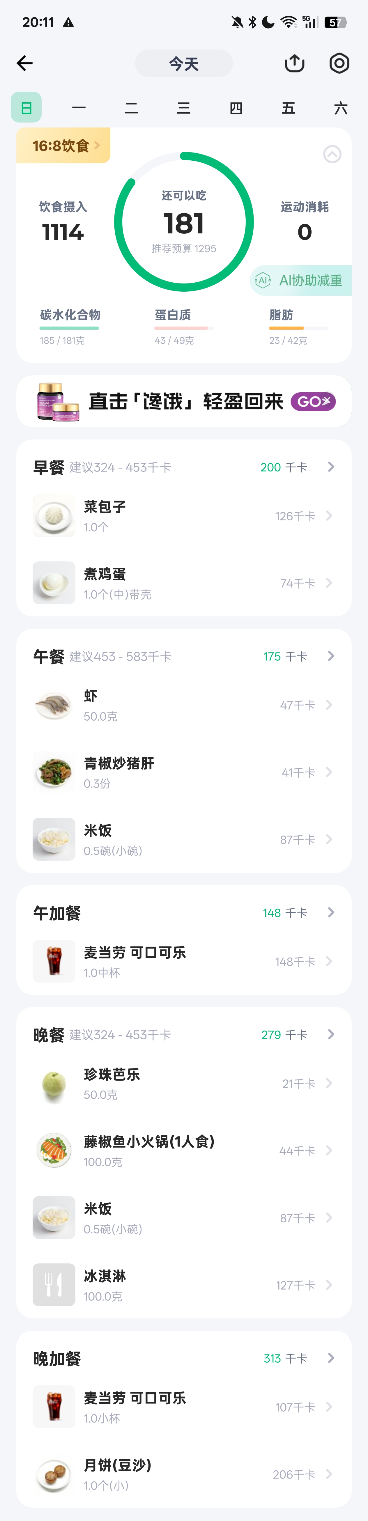 昨天吃夜宵了)今天起得晚就吃一餐晚饭好了