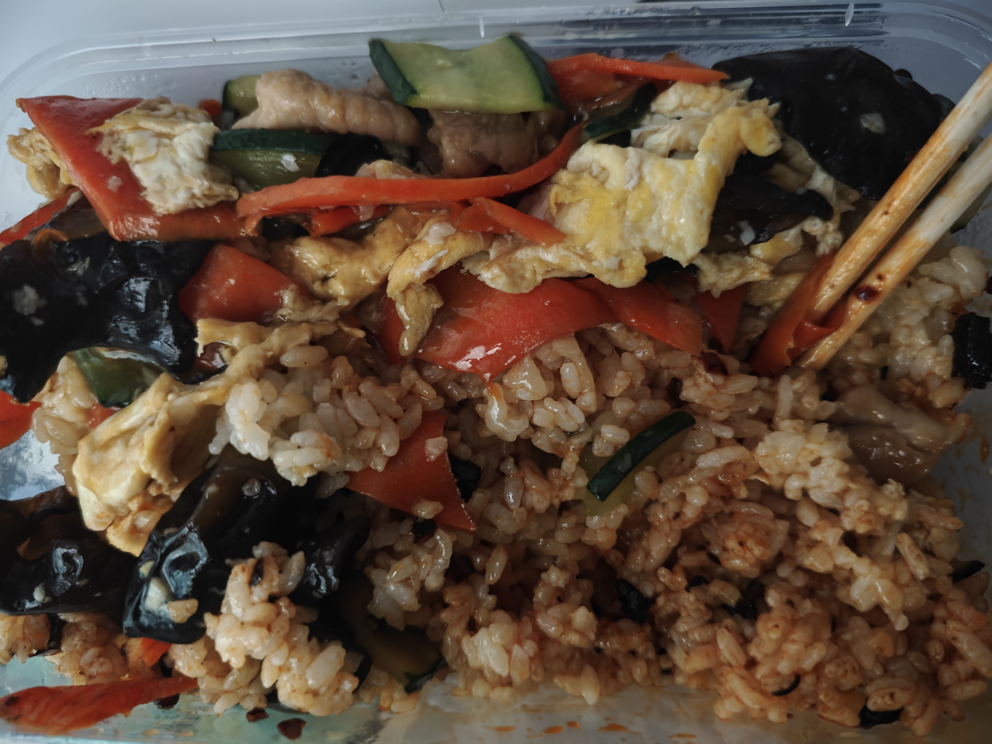 今天中午吃木须肉盒饭( ´ρ`)