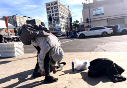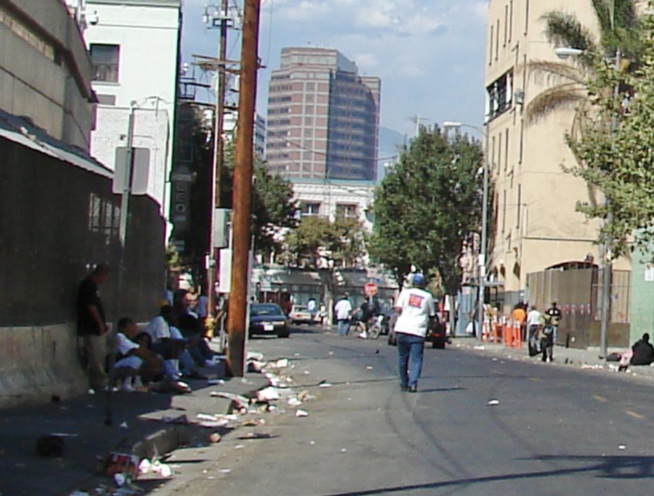 好奇心驱使你赴约,穿过繁华的洛杉矶市中心DTLA后,往东开去你便到了臭名昭著的Skid Row
