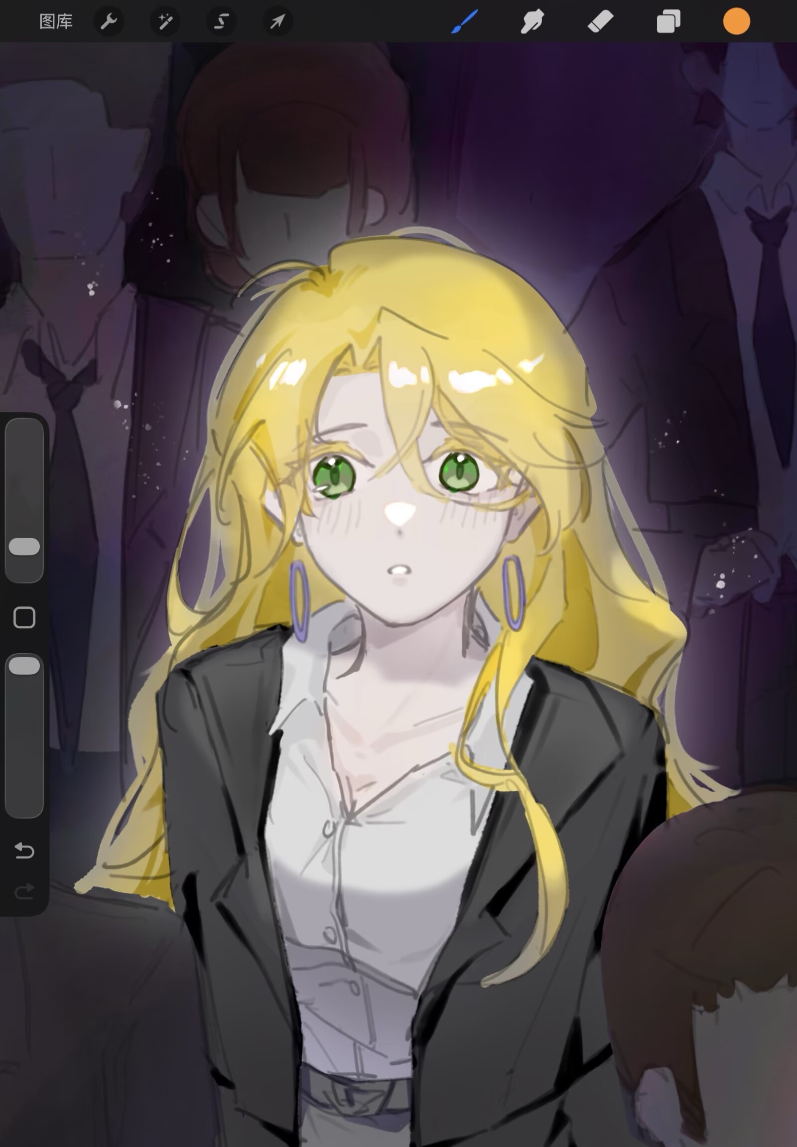 感觉又悟了点上色,起码眼睛在细化的时候思路更明确了。但整体构图依旧很困难,比如右上角太空,不知道该加点什么好。不过起码这张的黑白关系应该还可以吧……?