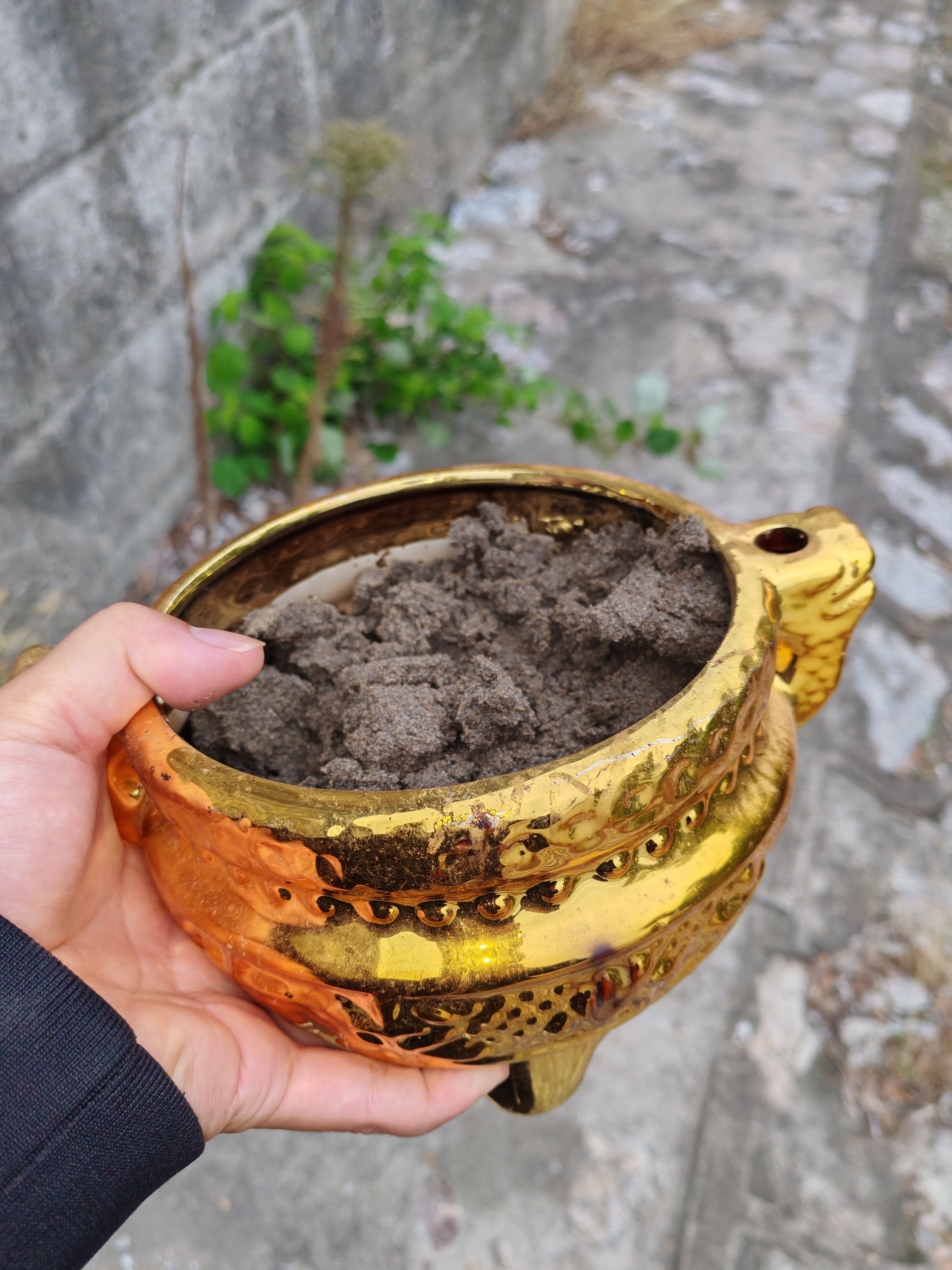 ta说这种香炉一般有灵性,不能丢垃圾桶,也不能丢河里,一般埋土里。要是有条件还可以裹红布。