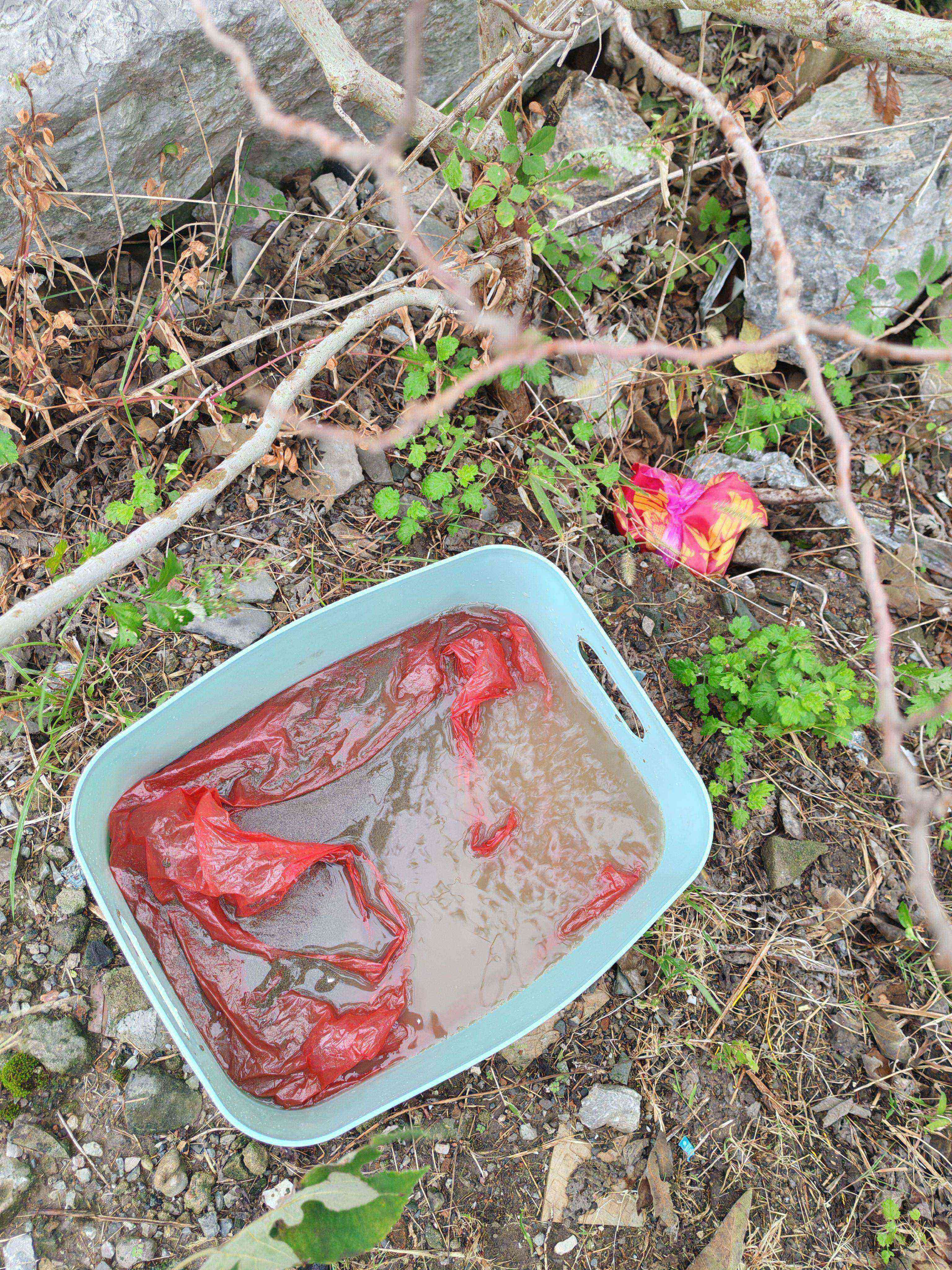 埋好以后,再放了几块砖头,防止它露出来。