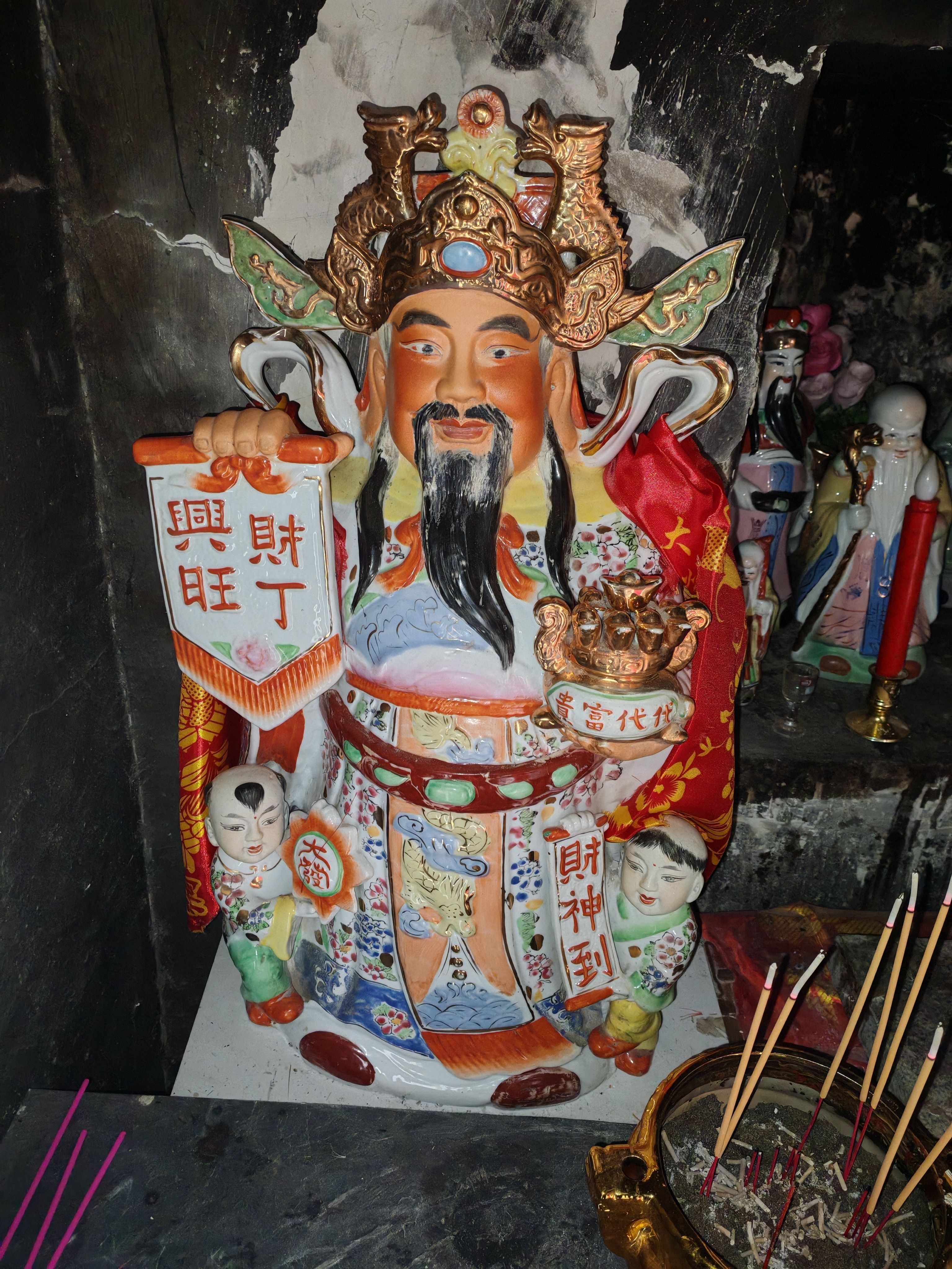 新香炉拿给财神爷的时候,感觉祂很开心。