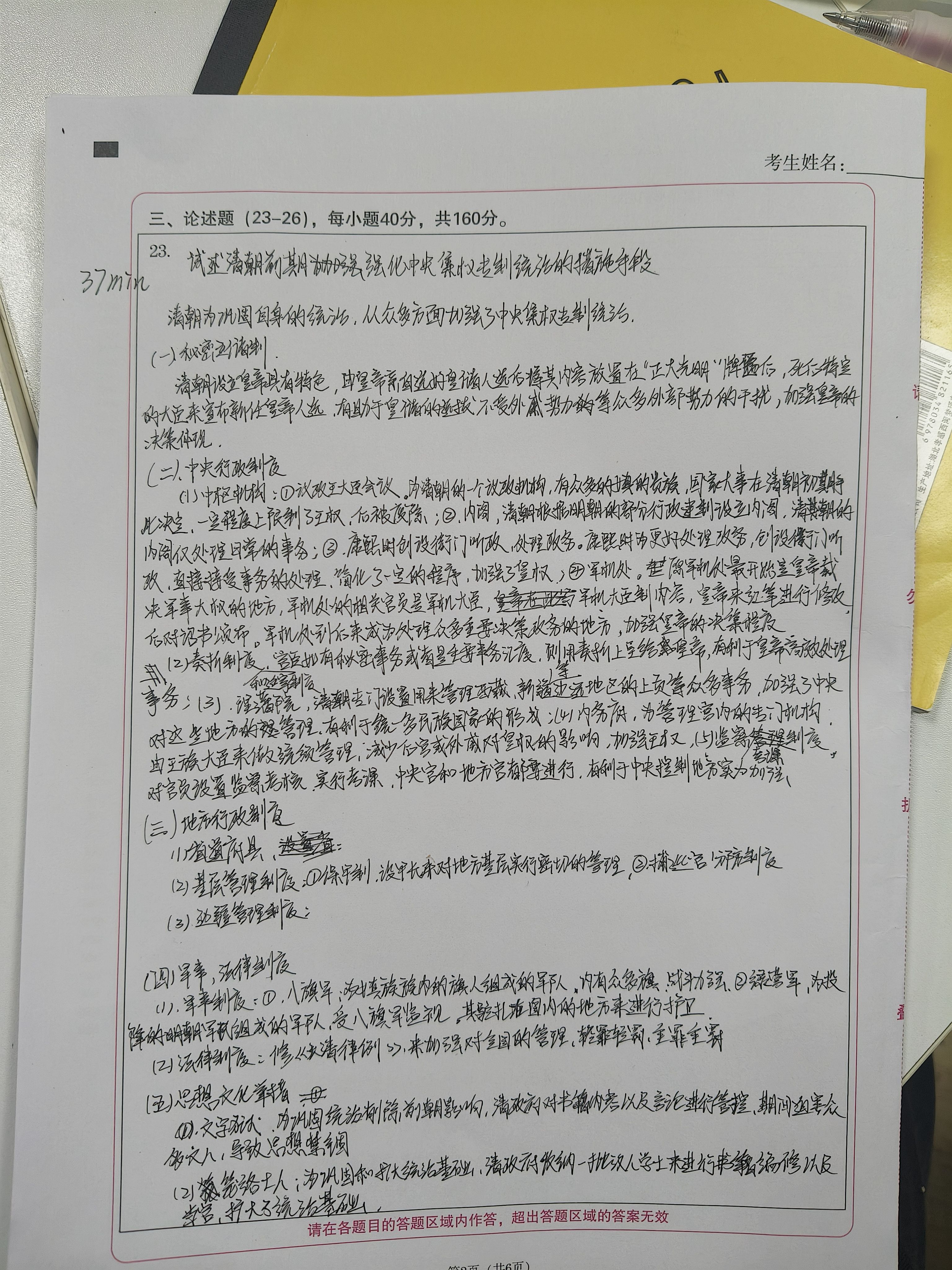 帮忙改的人讲到结构没准备好,能看到北宋那块写不下了(写到那里时间不够是限时写的,再加上北宋影响这一块我不太熟)