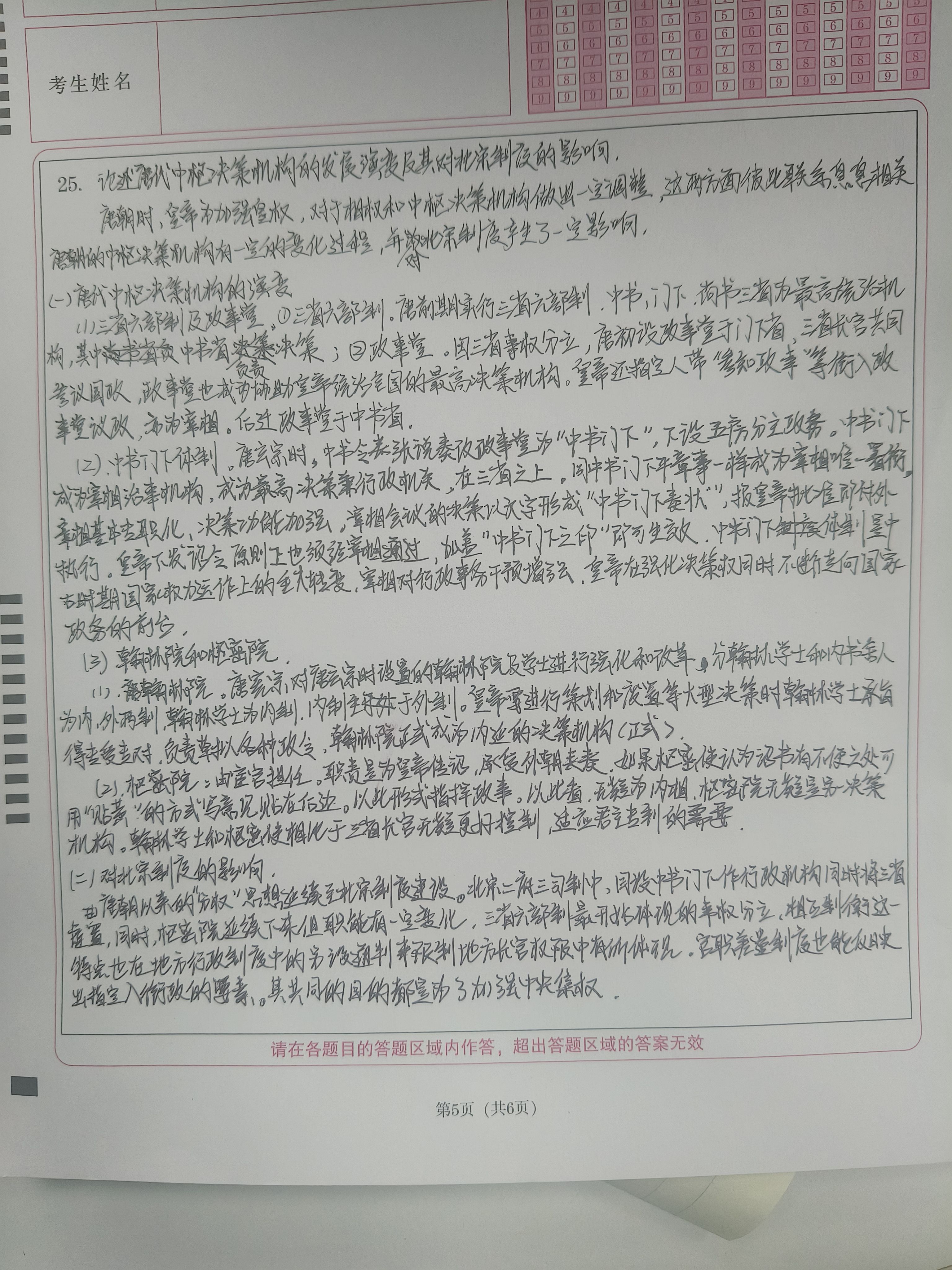因为这道题直接联想到zsb论述题里边的唐代中枢机构演变的内容,然后看到现在这道题。以为能够在这道差不多题基础上往演变这方面写但没写成,没能很好的体现演变,但是史实是写具体了的