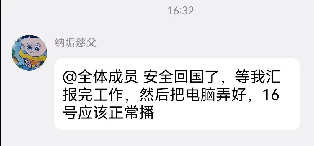 据说是被国家接回来的( ゚∀。)