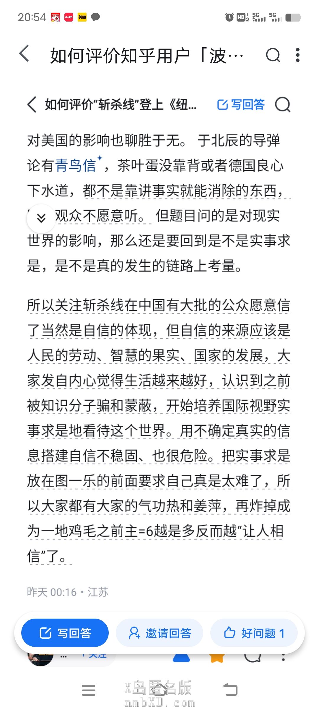 波士顿圆脸咋和老a杠上了,回答里的整体意思就是:老a本意是好的,打破过去知识分子信息垄断也是好的,但是还是有造谣,网民懂个意思就行了,爱国是好的,但你要全信了你就是逆大天。然后和安好心之类的爱国博主干起来了( ゚∀。)