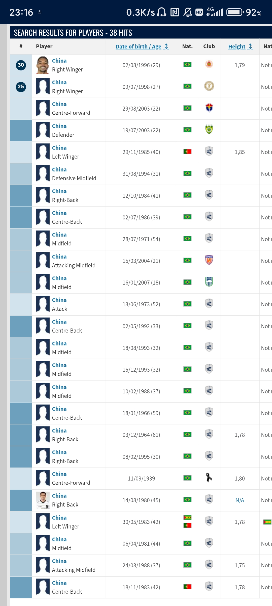 以前玩足球经理就发现有个巴西的虚拟球员就叫China,而这样的球员现实中至少有38个(`・ω・)