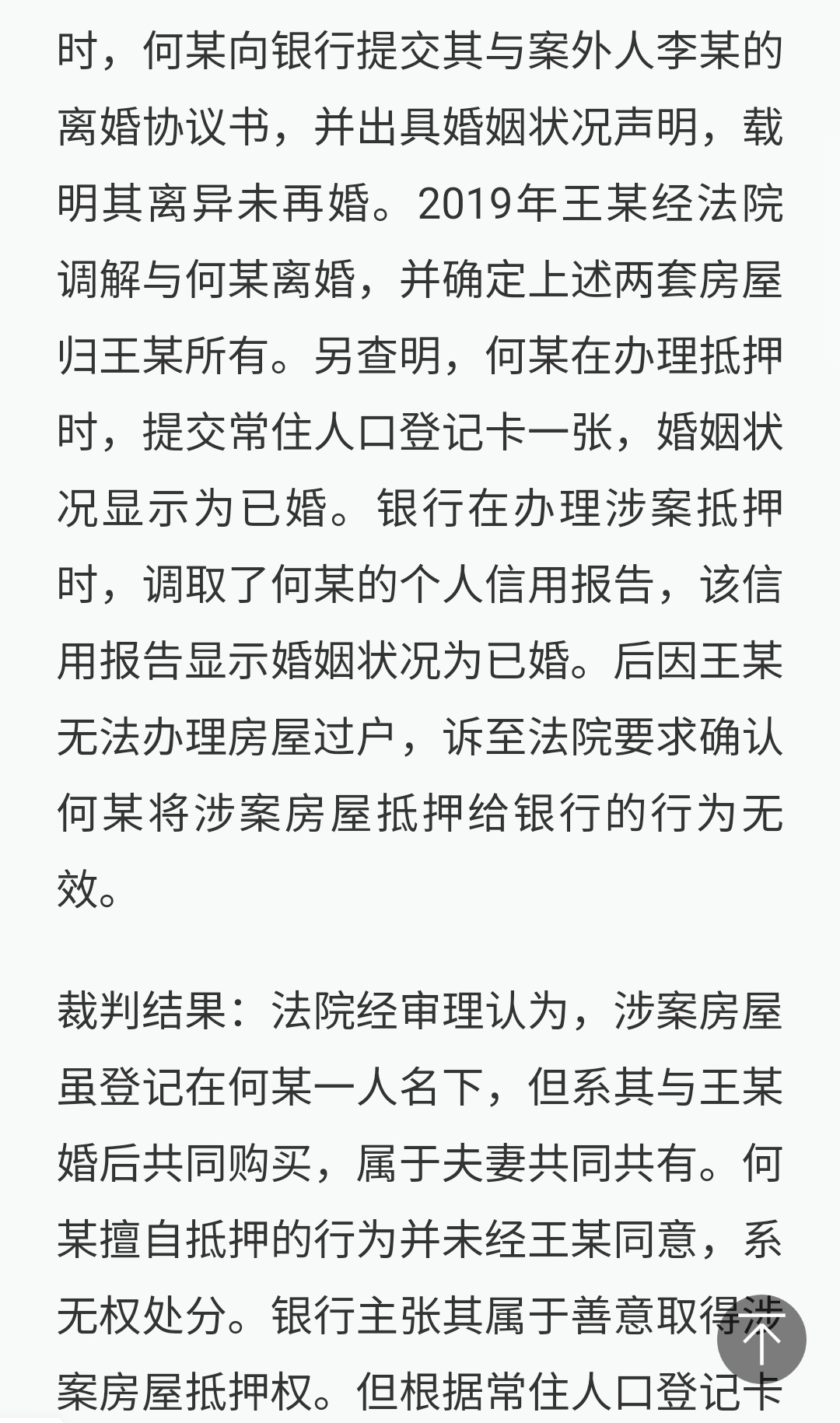 同一个法官判同一类型的案件,一个是拿着假结婚证把房子抵押的案件就可以胜诉,而拿着假离婚证的案件就会败诉,我只是不明白罢了,整个事情好复杂,我一回忆起来就想吐。