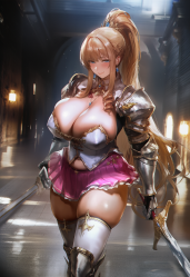 你的面前站着一位女骑士,其肤白貌美腰细腿长金发碧眼巨乳肥臀,一看就是哦齁齁齁的奇才口牙!