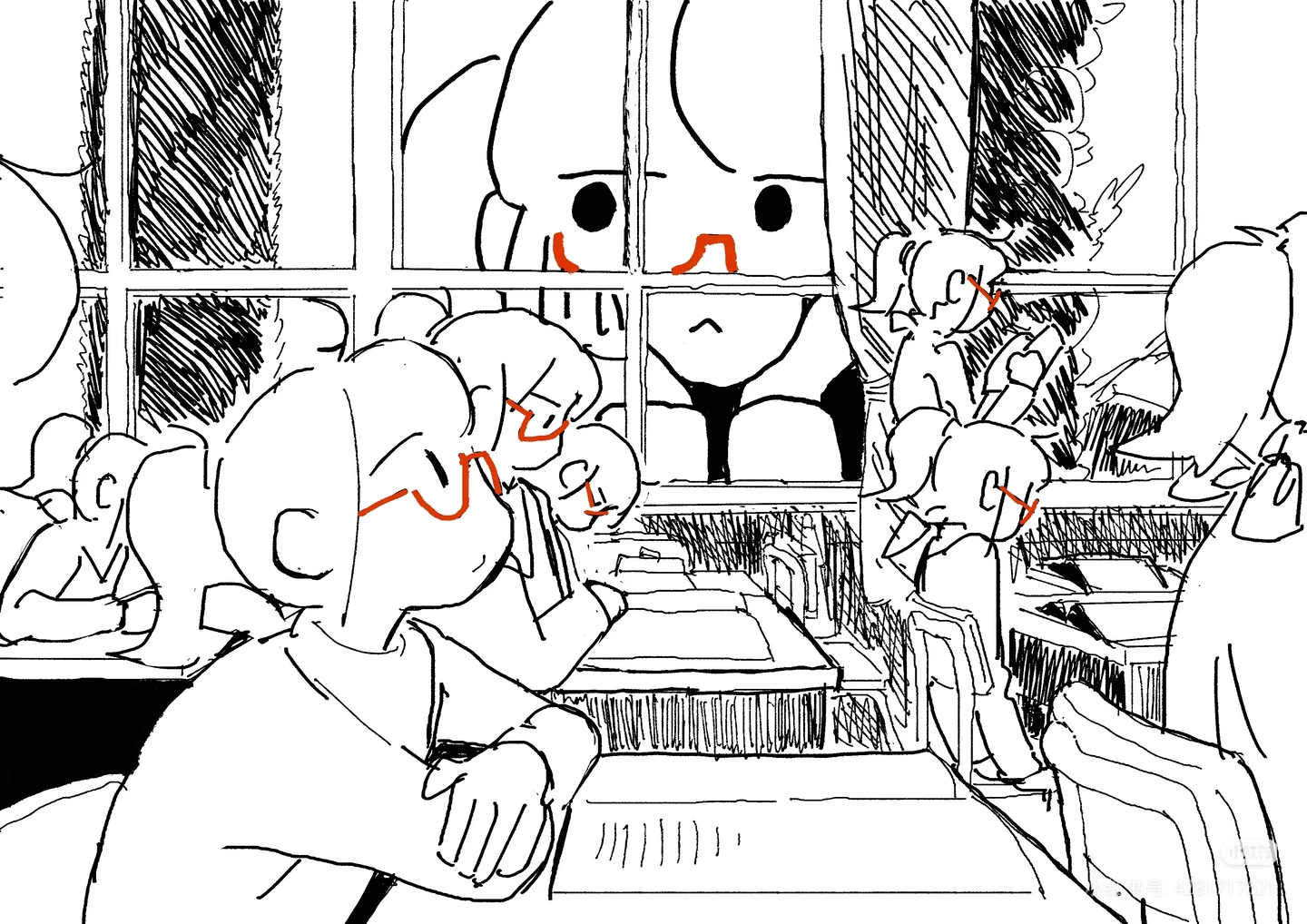 模仿的风格的排线黑白灰逻辑我没太学会,最终效果乱乱的