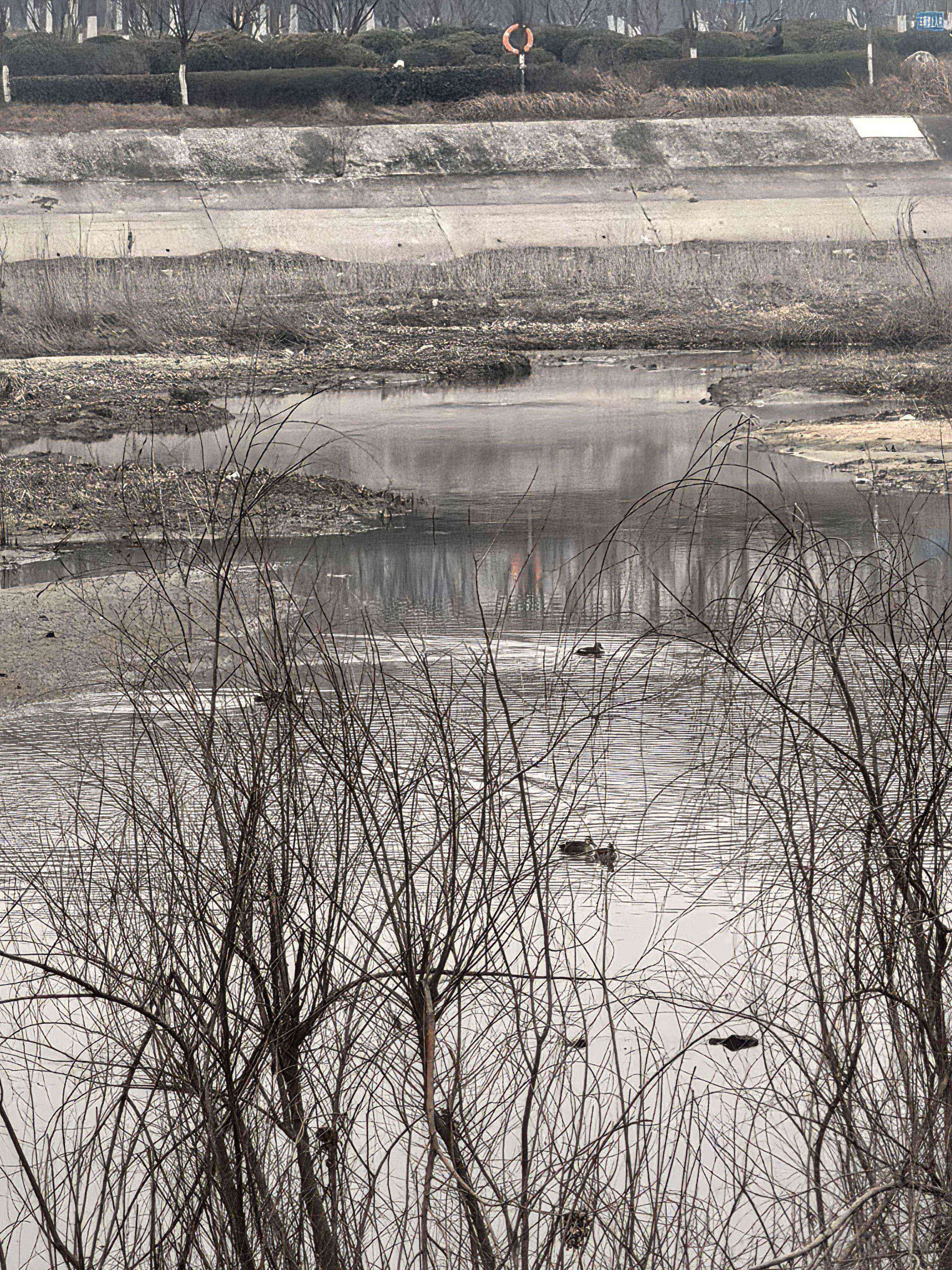 尝试了一下下到下面河滩上去拍,结果小空军马上就飞走了(*´д`)