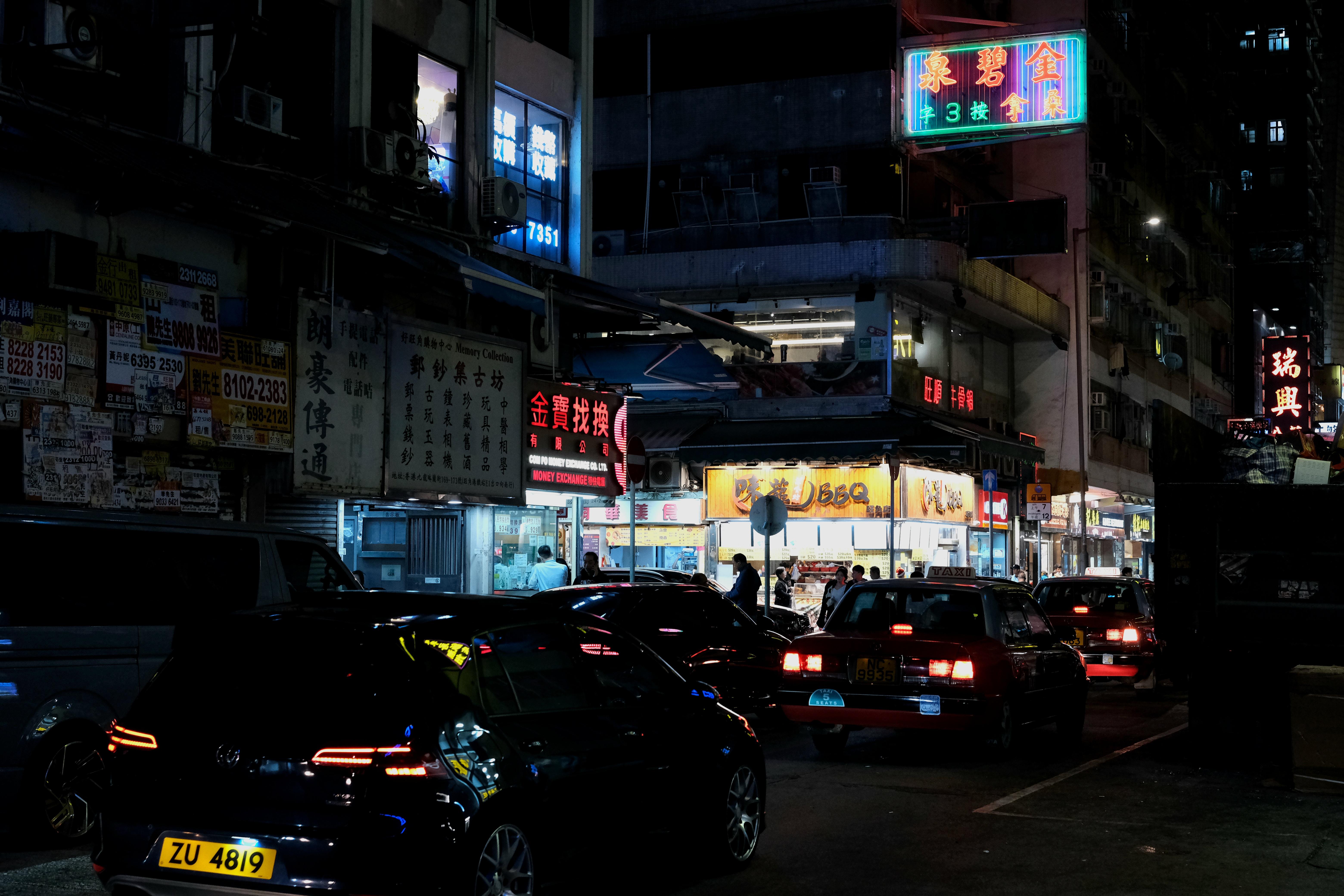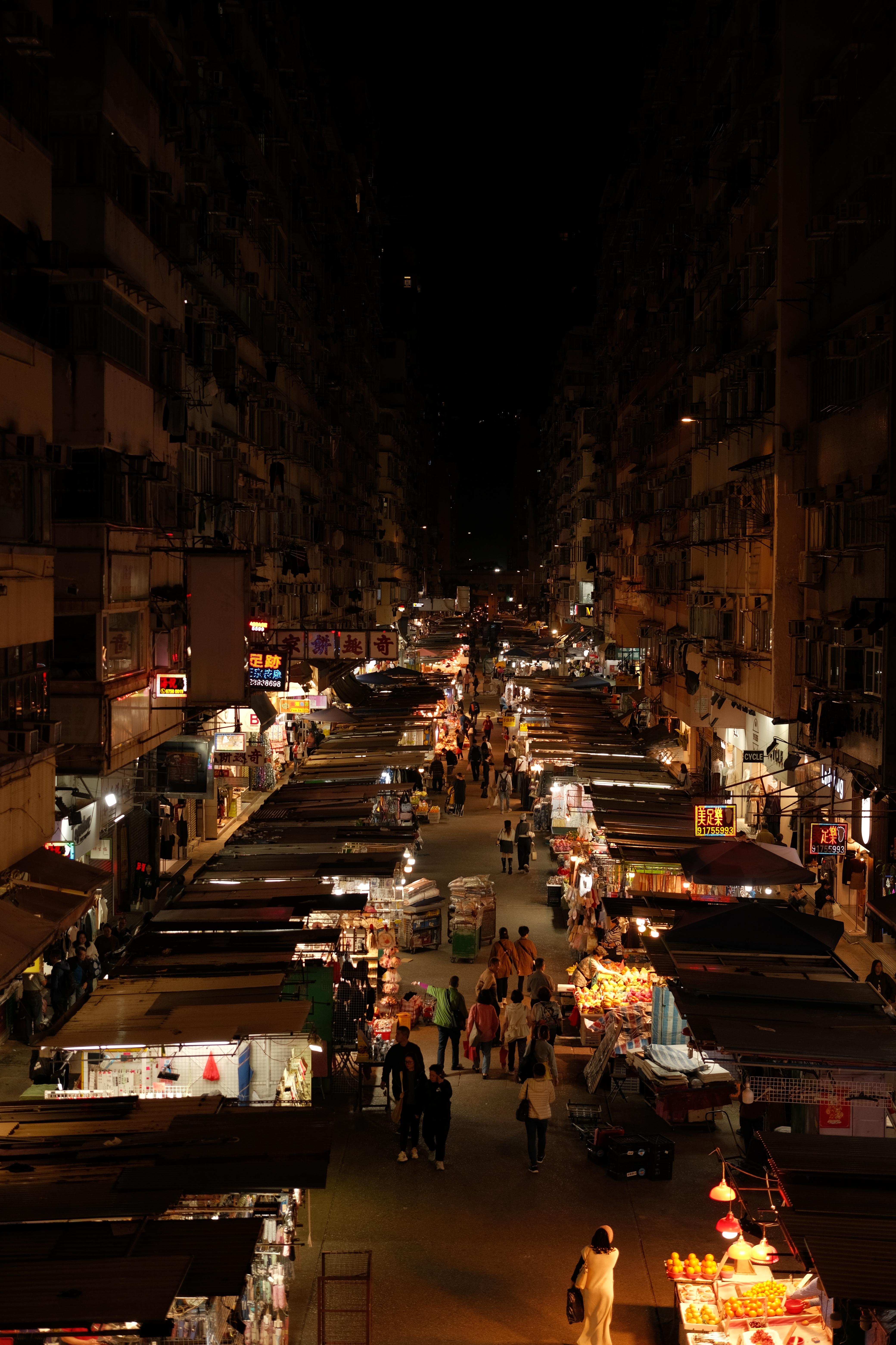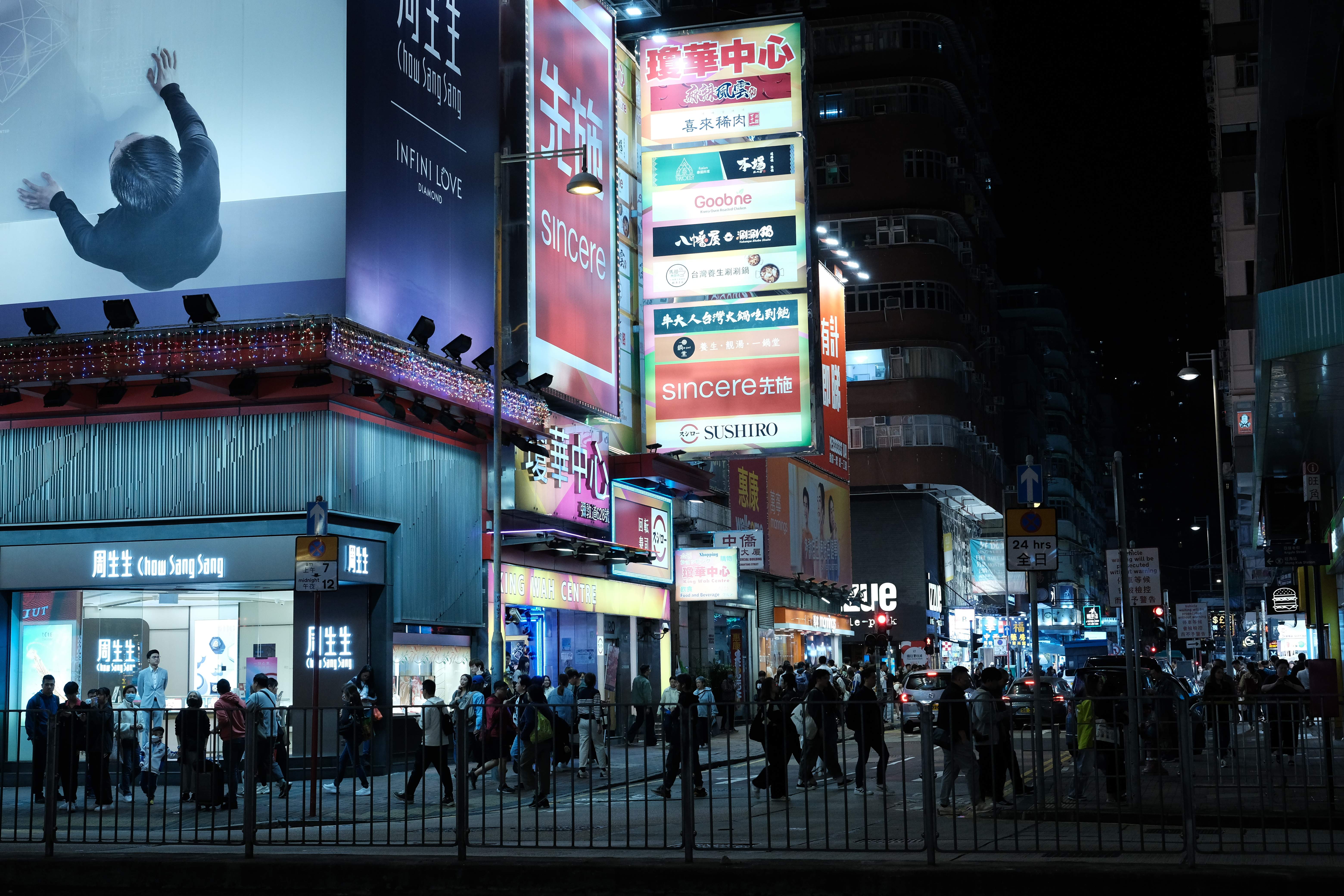 晚上的街道来来往往人非常多,香港的人口密度相当高