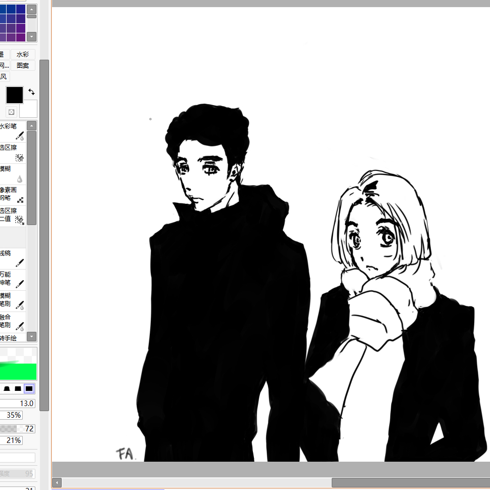 尝到甜头之后继续用大色块画了朋友