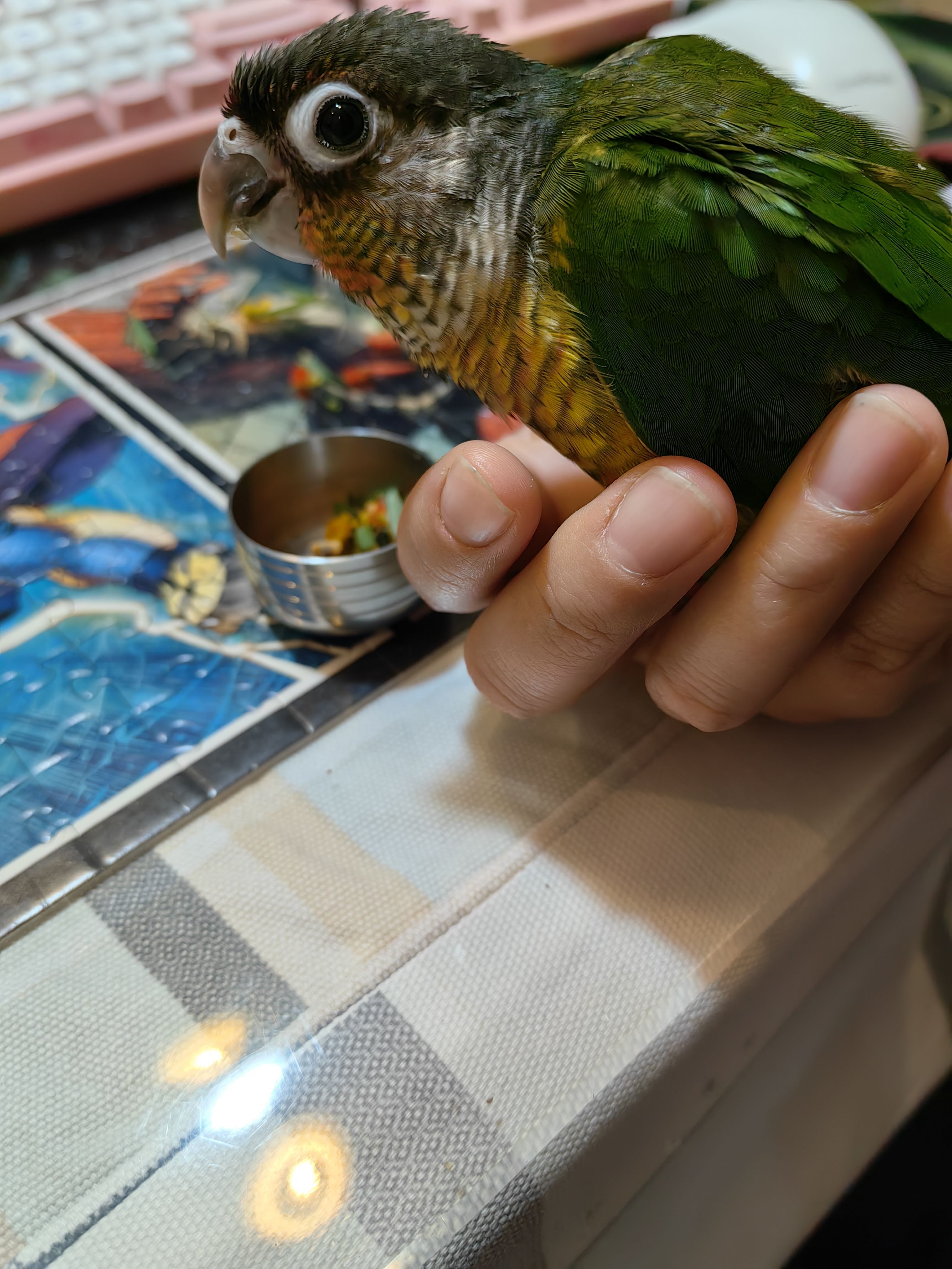 叫爸爸这事就复杂一点,首先我接到的柚柚原本的叫声是4声(叽叽叽叽),某天他由四声改成2声(叽叽)时 我就鼓励了,至于为什么他没选择拉粑粑/柚柚这些更高频的,而选择 爸爸,我觉得可能是更好发音?或者是其他两个他其实也说了 只是我没听出来,没有及时正反馈,总之爸爸是到家很快就学会叫了的