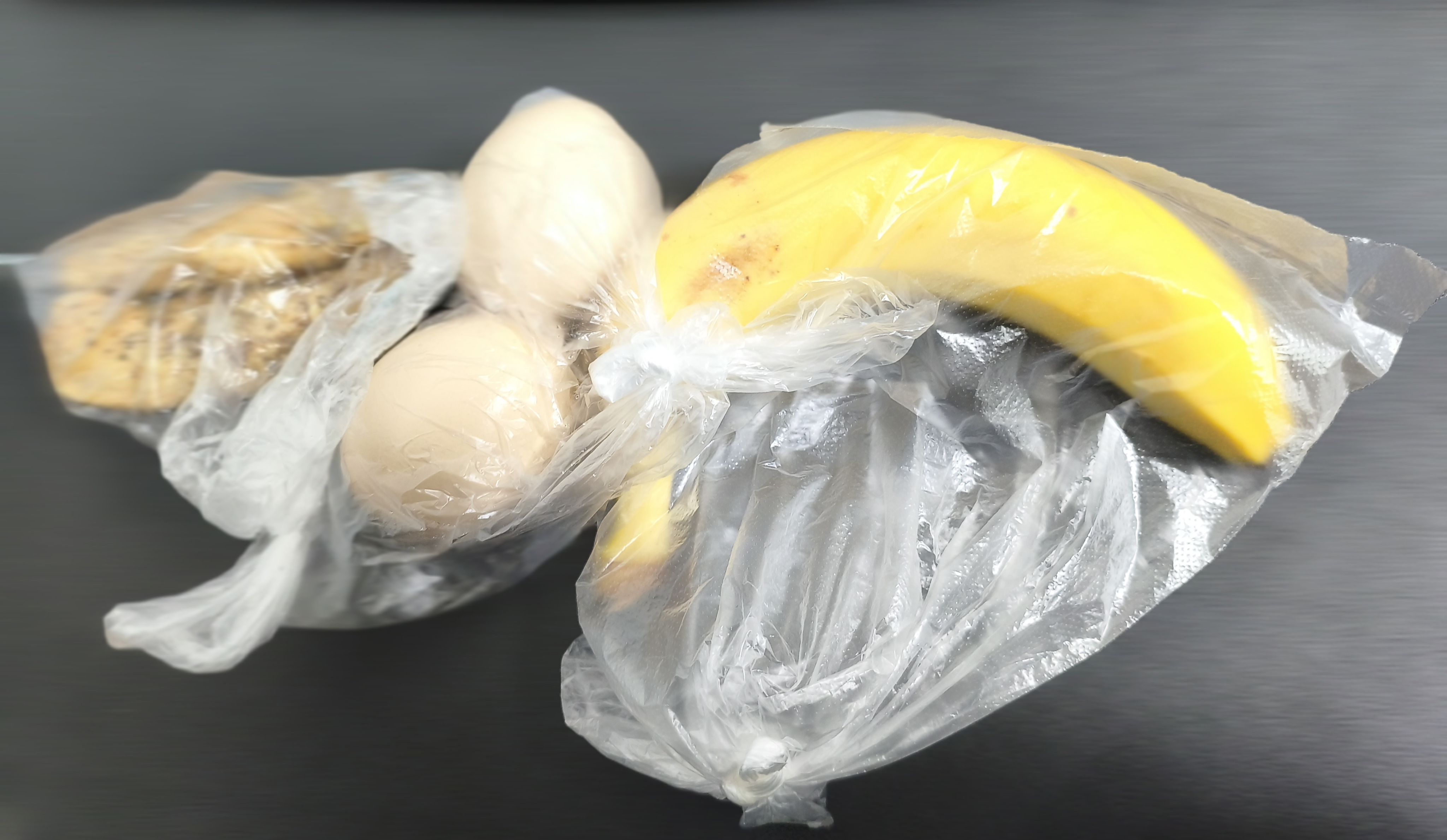 今天的下午茶,俩根鸡小胸+香蕉+2颗水煮溏心蛋( ゚∀゚)