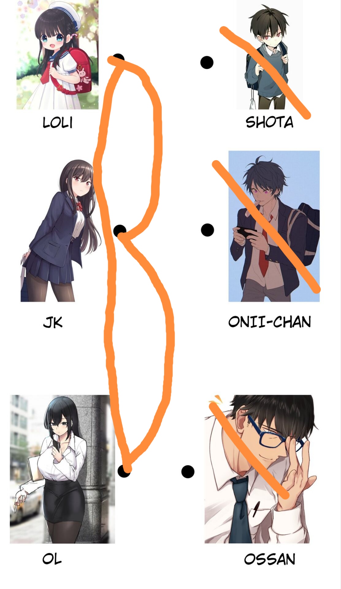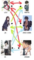 幼驯染组,女同组,男同组,正好三对