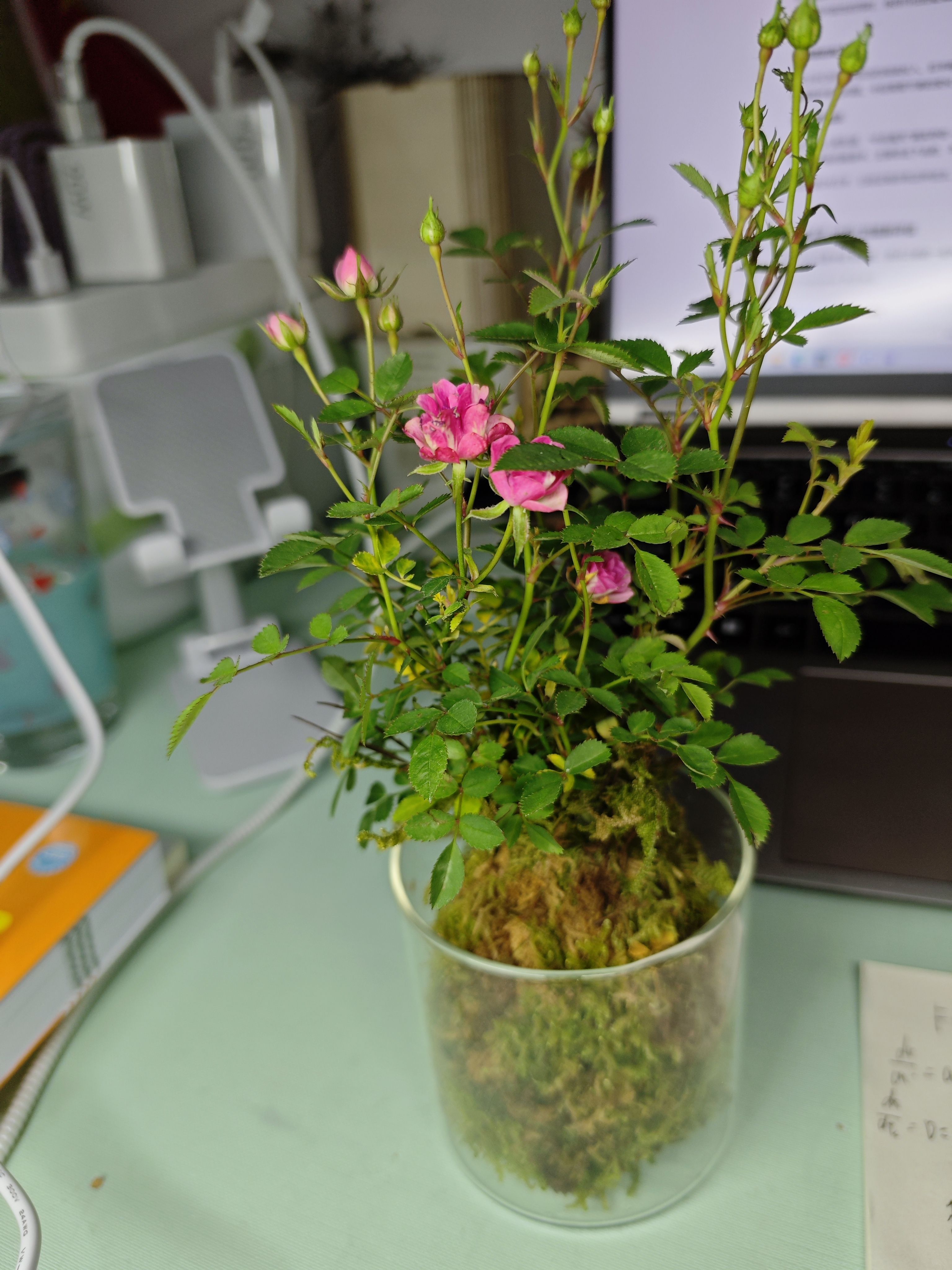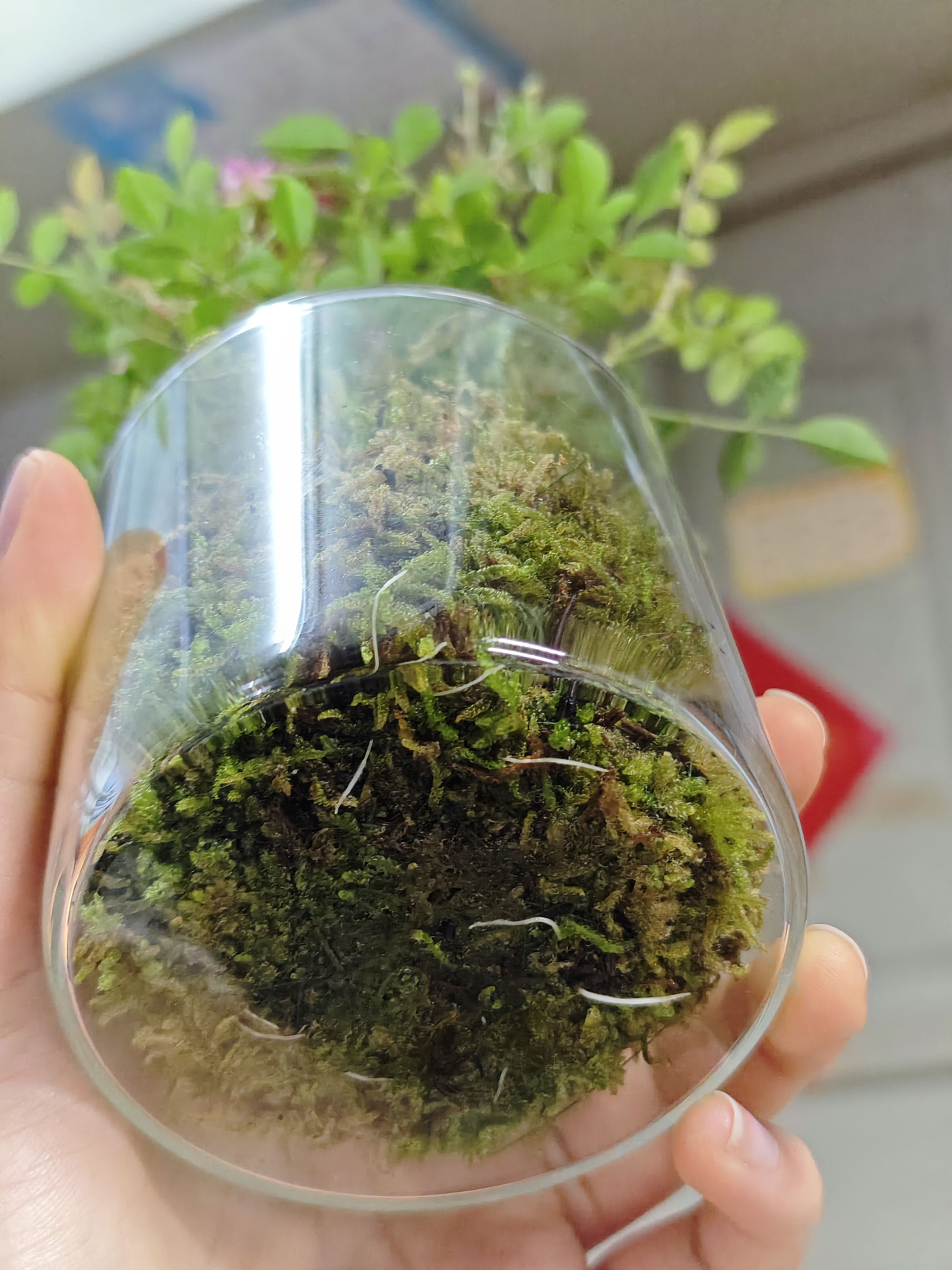 我也喜欢迷你花,但是从来都不敢养,我觉得苔藓水培加开花植物太脆弱了,就像名字一样,是一个难搞的日式美少女。