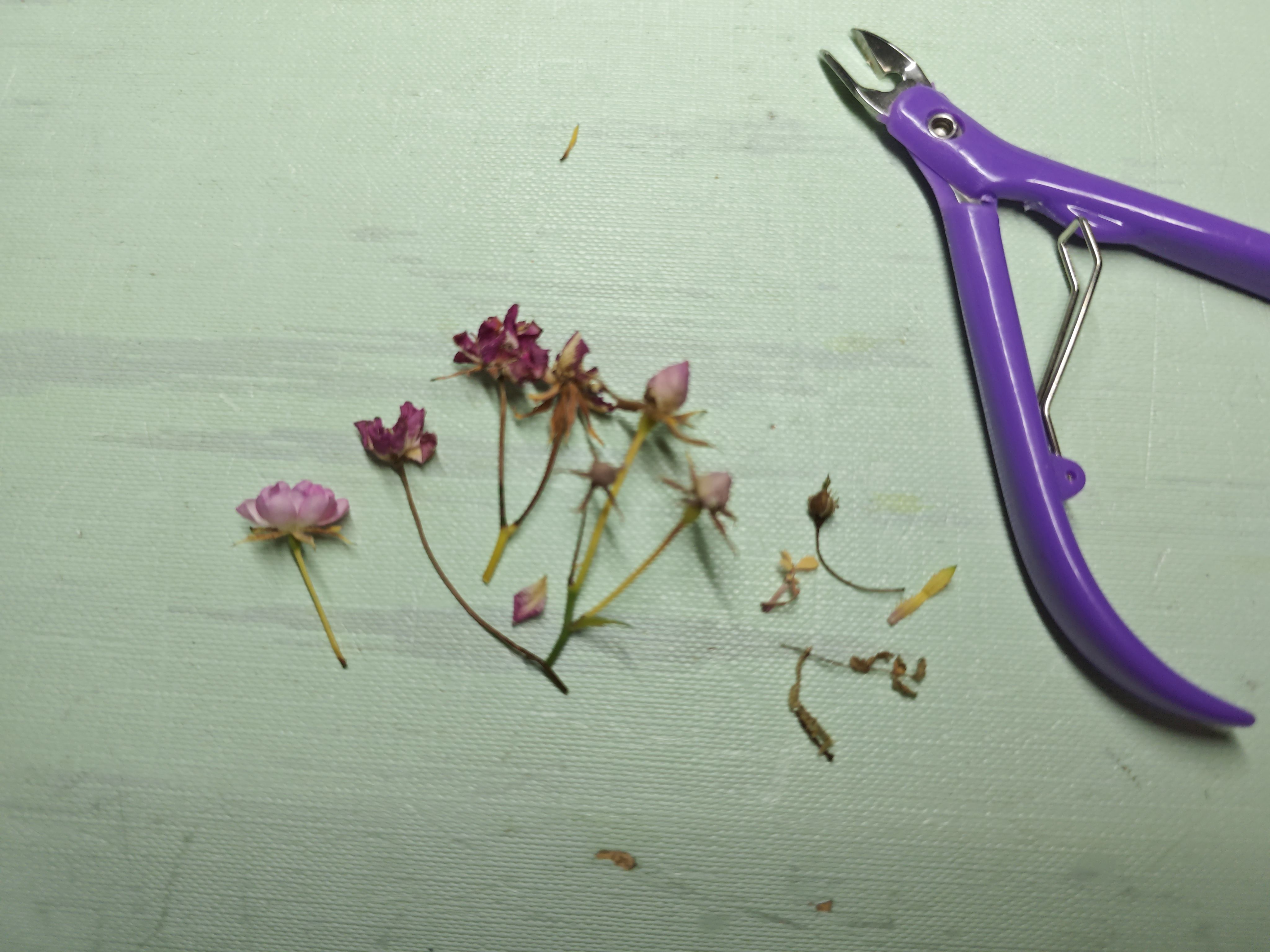 用小水口钳把花和枯枝疏了一下