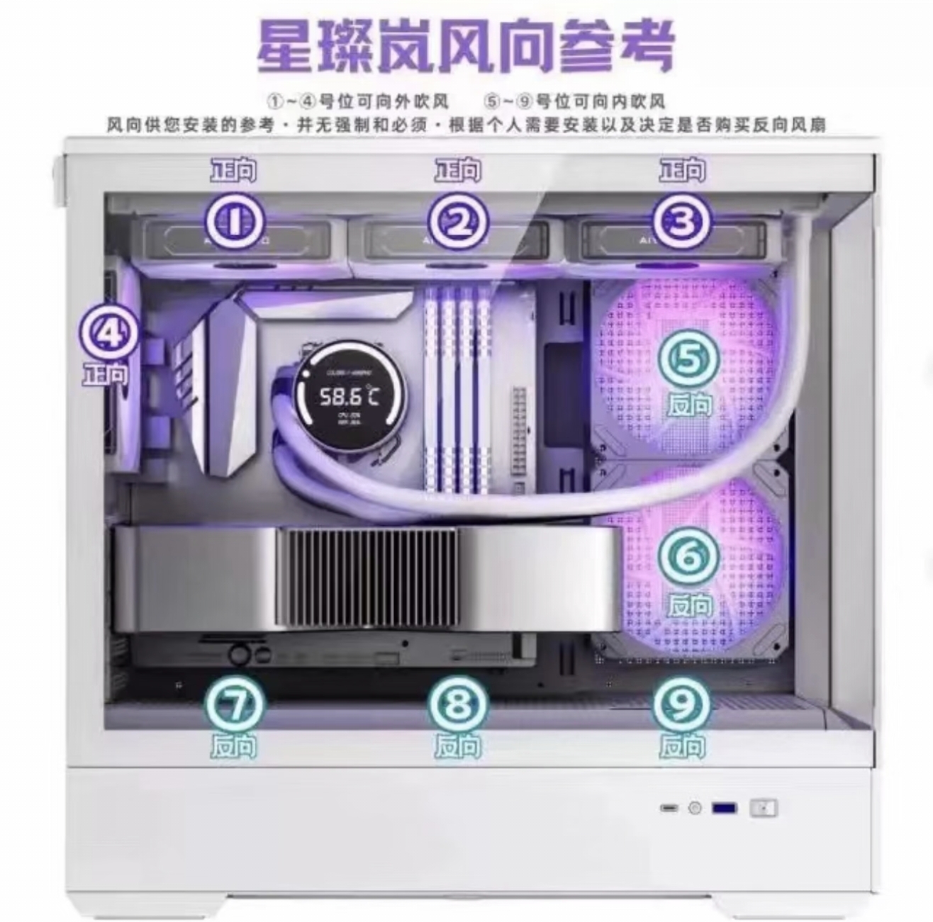 我的机箱正好是星璨小岚,没有56那两个,装了1234四个,实测789用处不大,自然进气完全够用