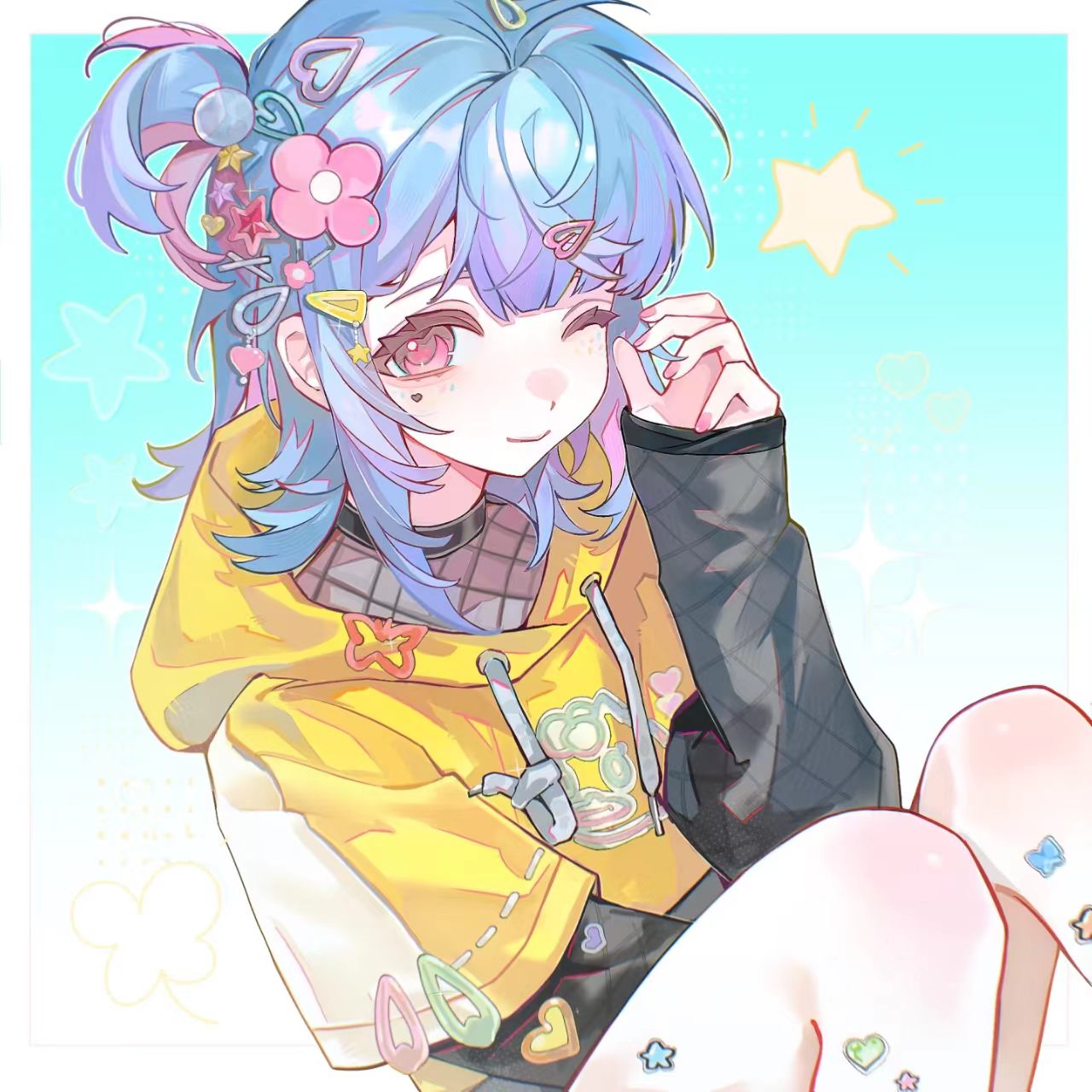 后来人鱼妹就变成漂亮妹子(可能是蓝色头发)转入男主的学校了